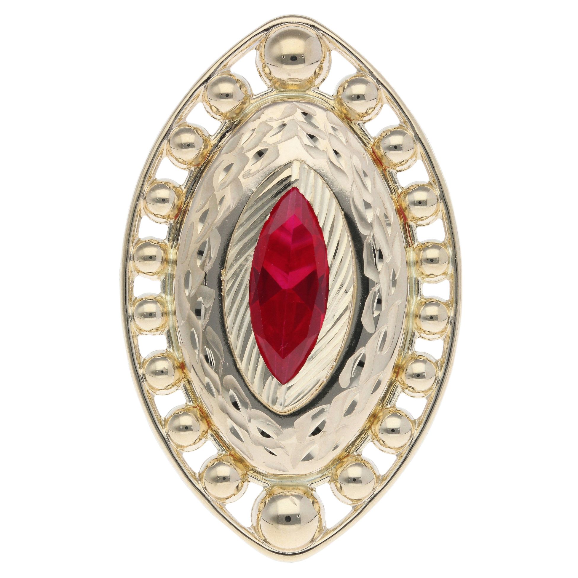 14ct Yellow Gold Red Gemstone Ball Pattern Marquise Ring