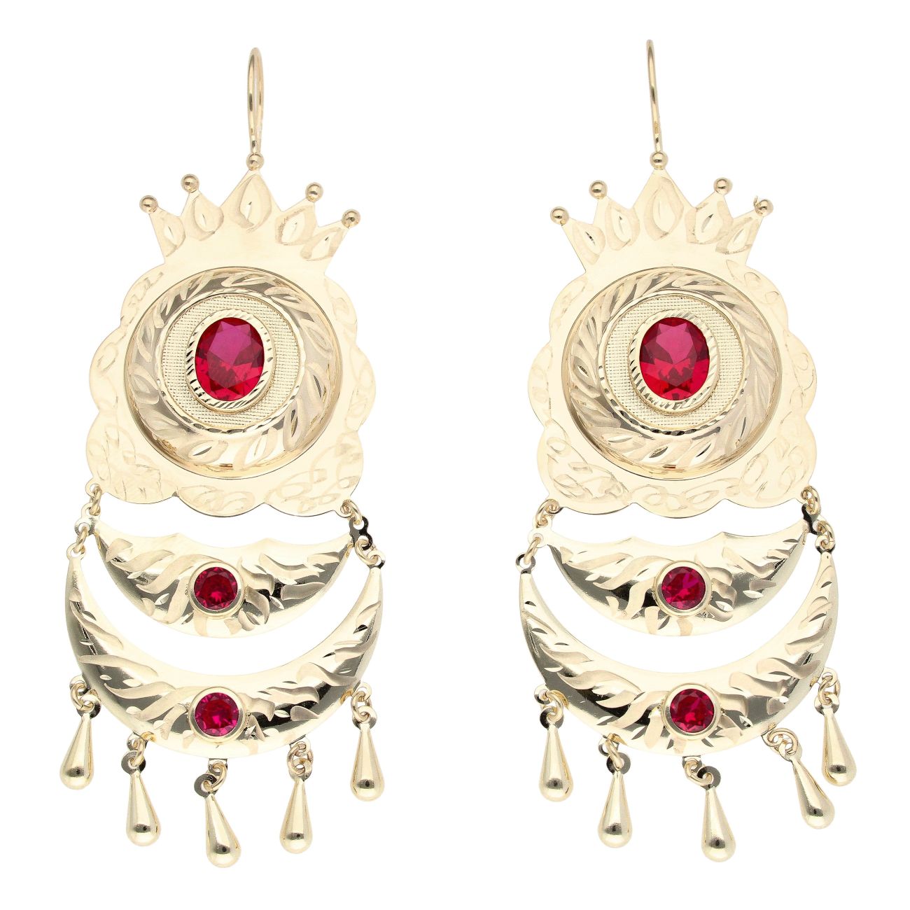 14ct Yellow Gold Red Gemstone Fancy Drop Earrings