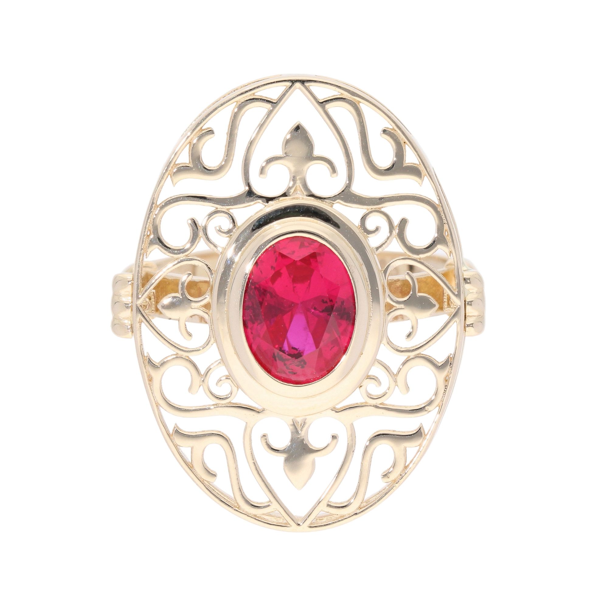 14ct Yellow Gold Red Gemstone Filigree Ring
