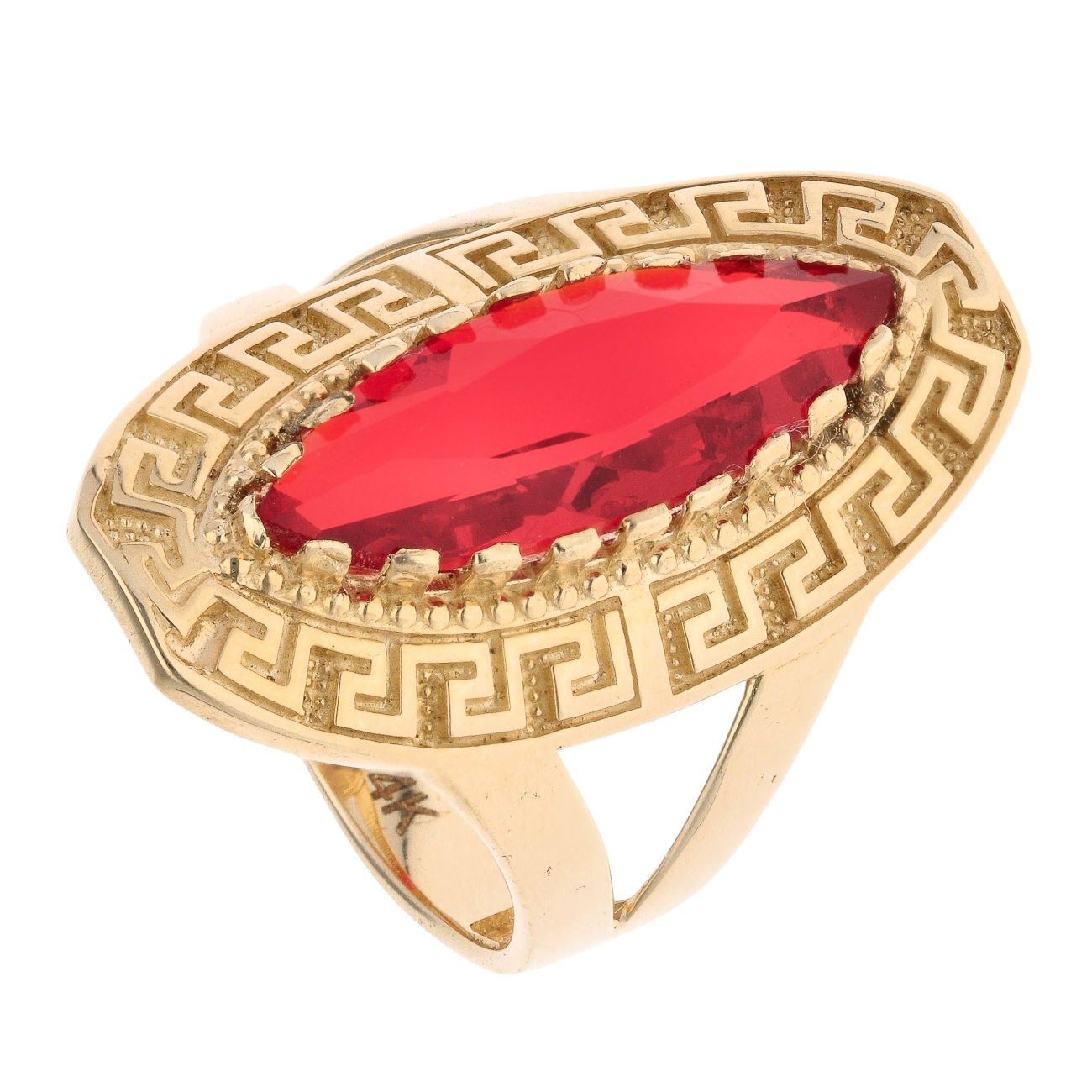 14ct Yellow Gold Red Gemstone Greek Key Ring