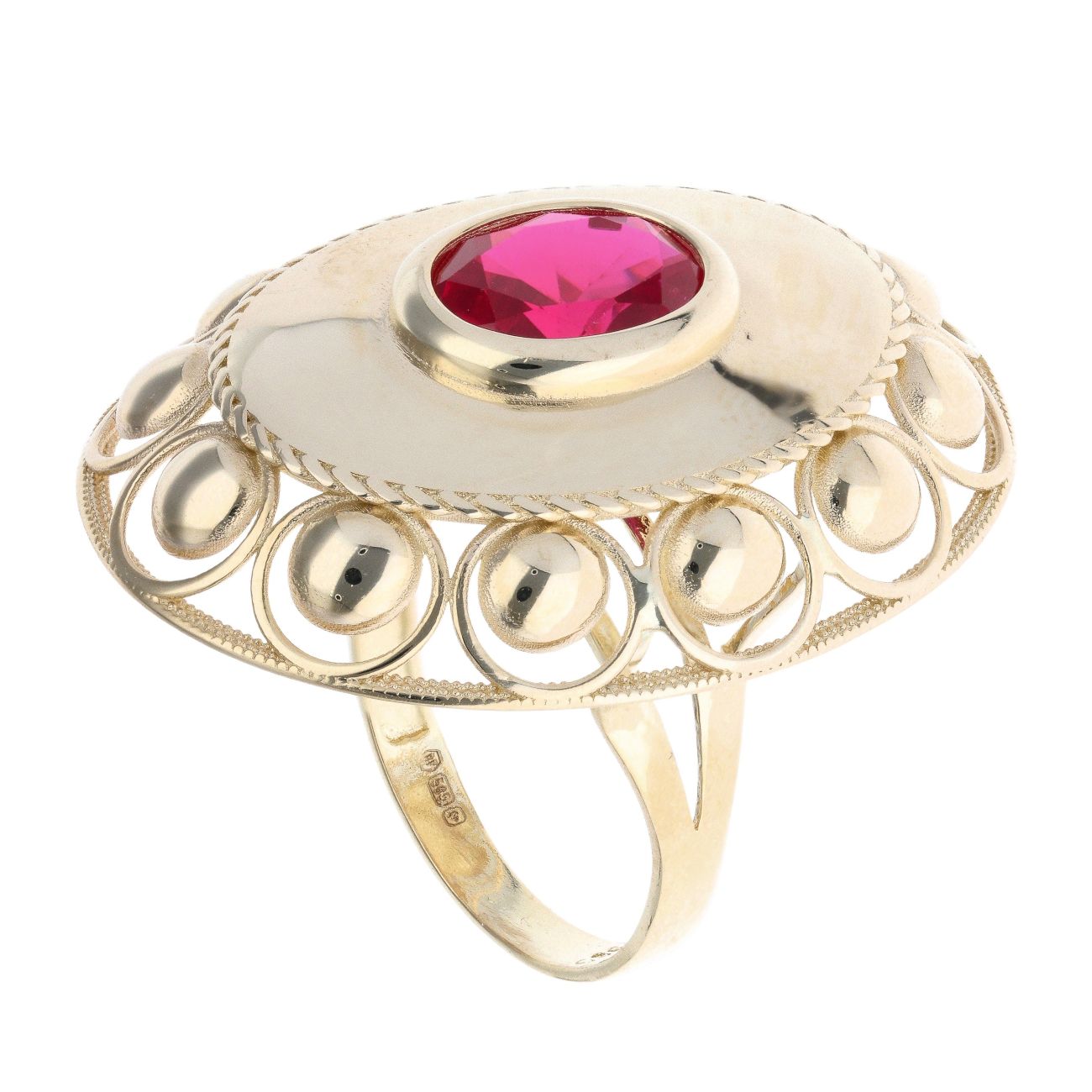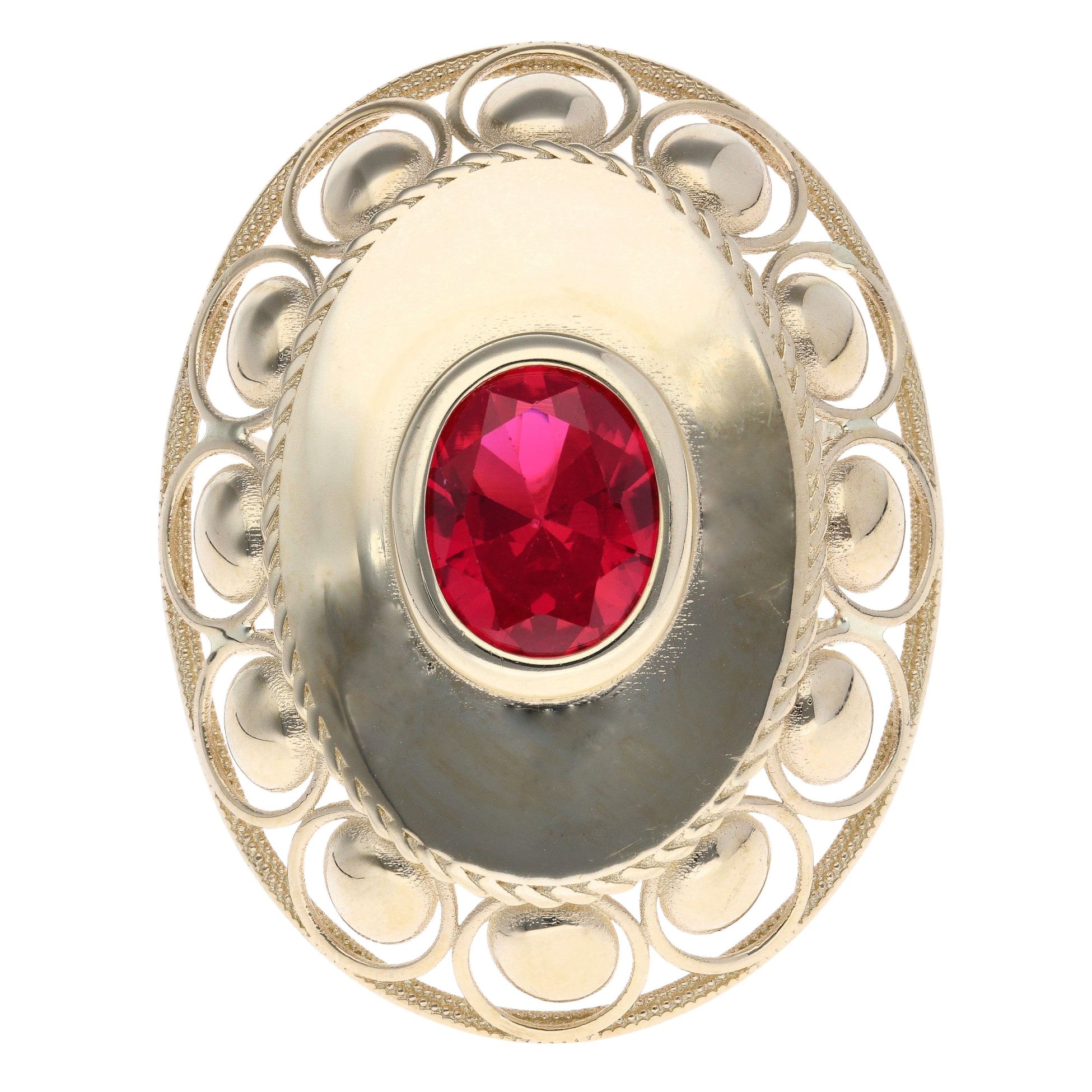 14ct Yellow Gold Red Gemstone Oval Ring