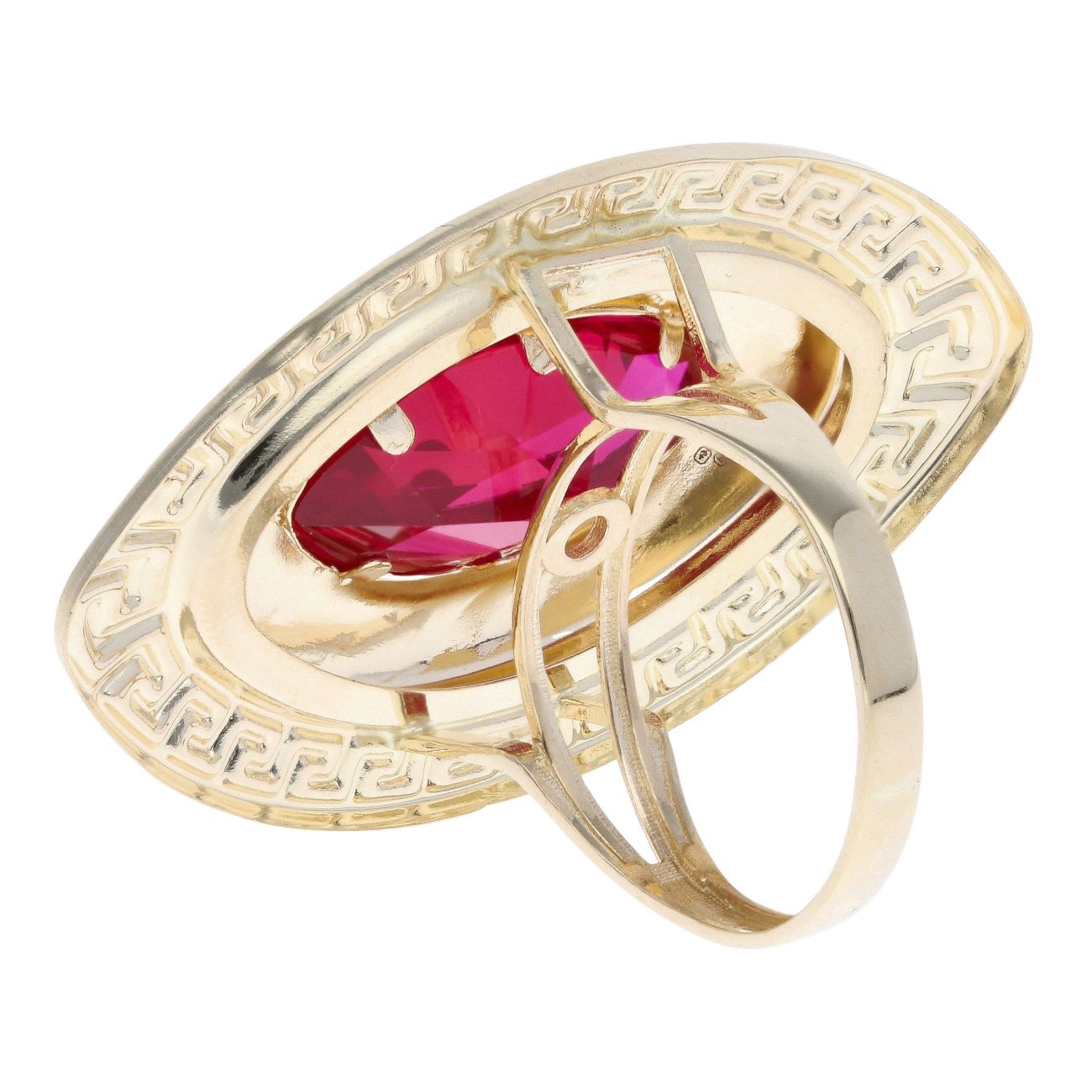 14ct Yellow Gold Red Gemstone Patterned Marquise Ring