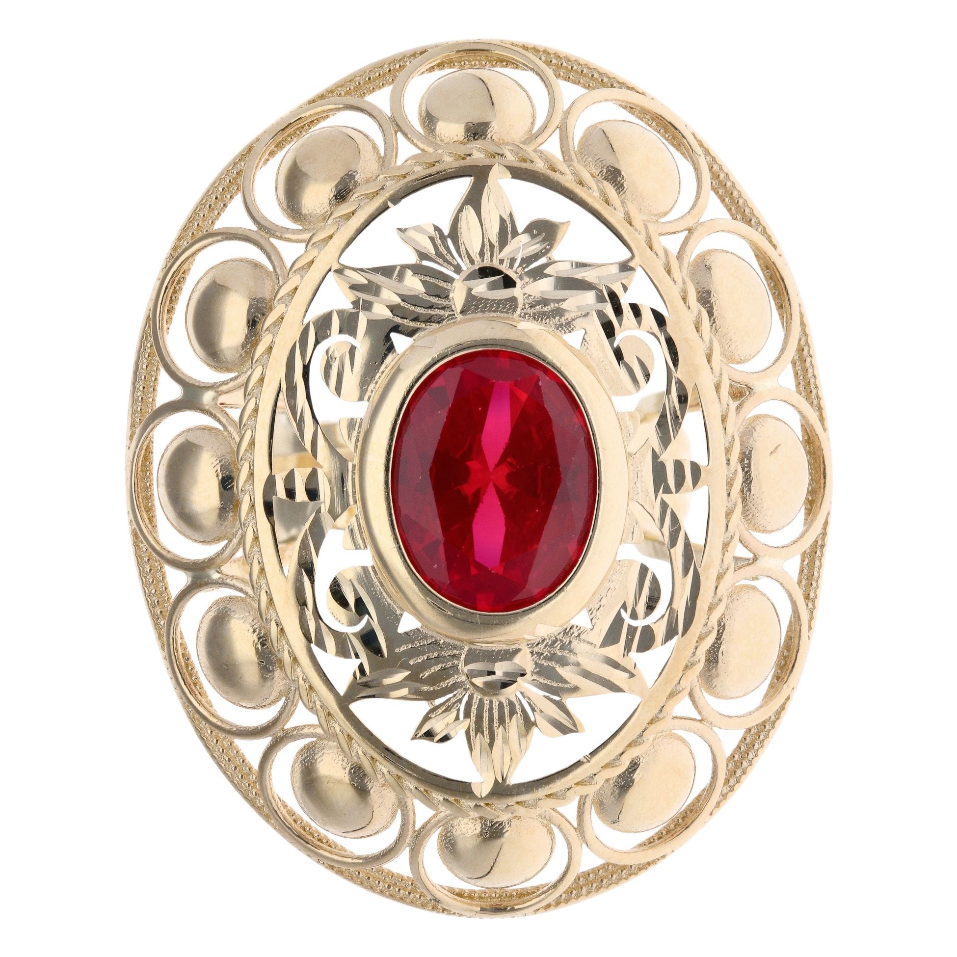 14ct Yellow Gold Red Gemstone Patterned Ring