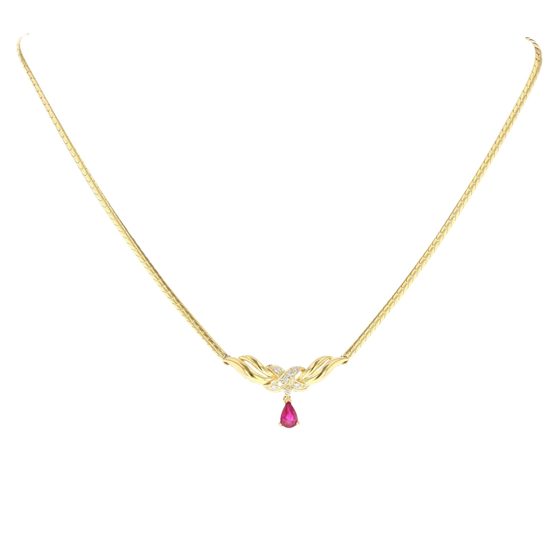14ct Yellow Gold Ruby And Diamond Pendant And Chain 16"