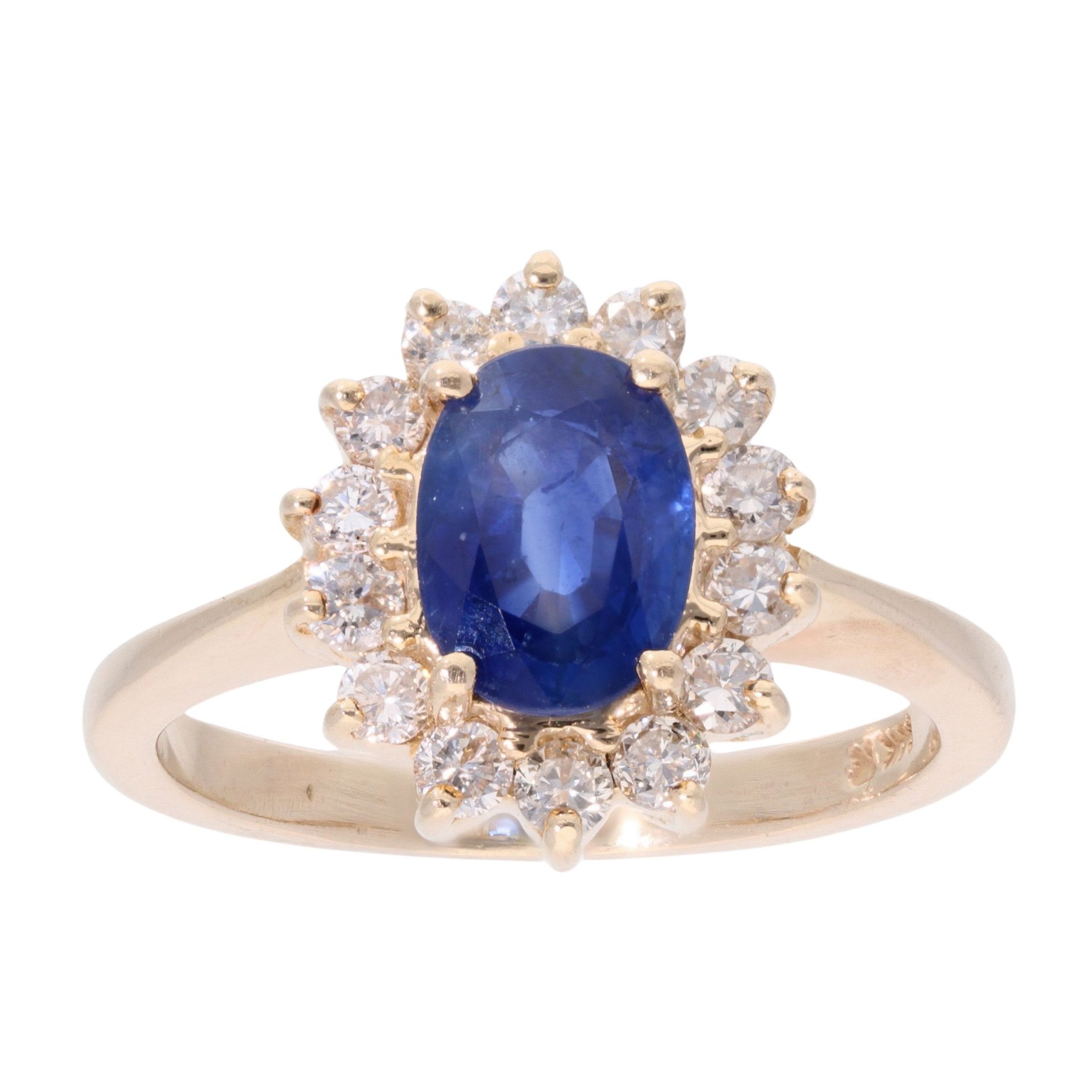 14ct Yellow Gold Sapphire And 0.40ct Diamond Cluster Ring