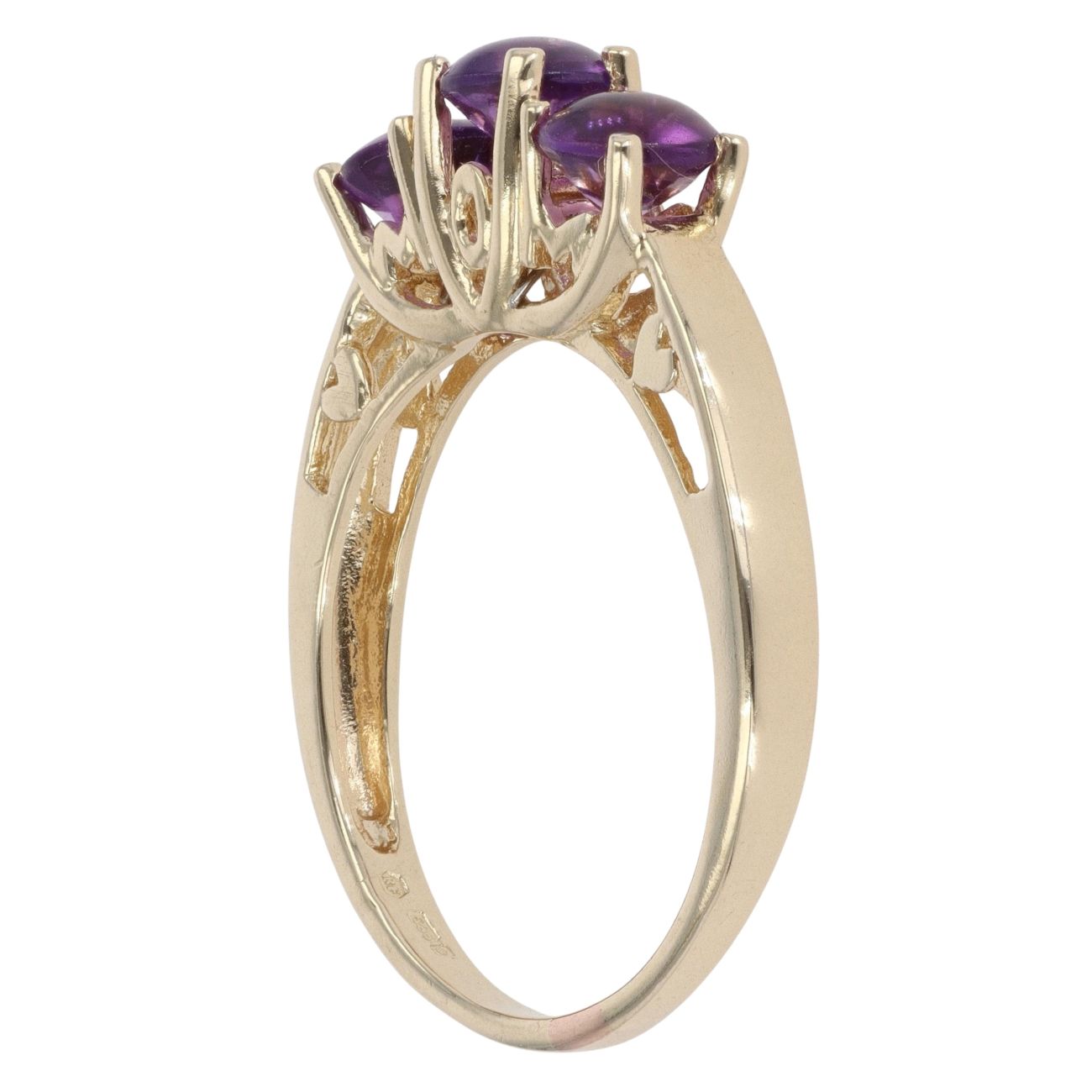 14ct Yellow Gold Three Stone Amethyst Cabochon Ring