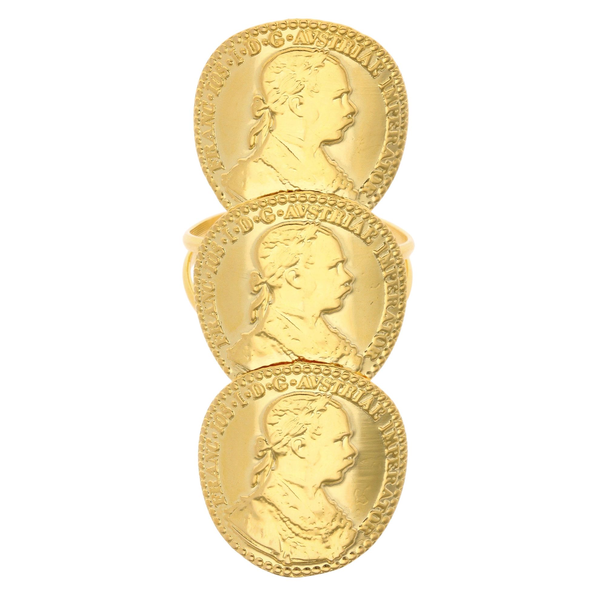 14ct Yellow Gold Triple Coin Ring
