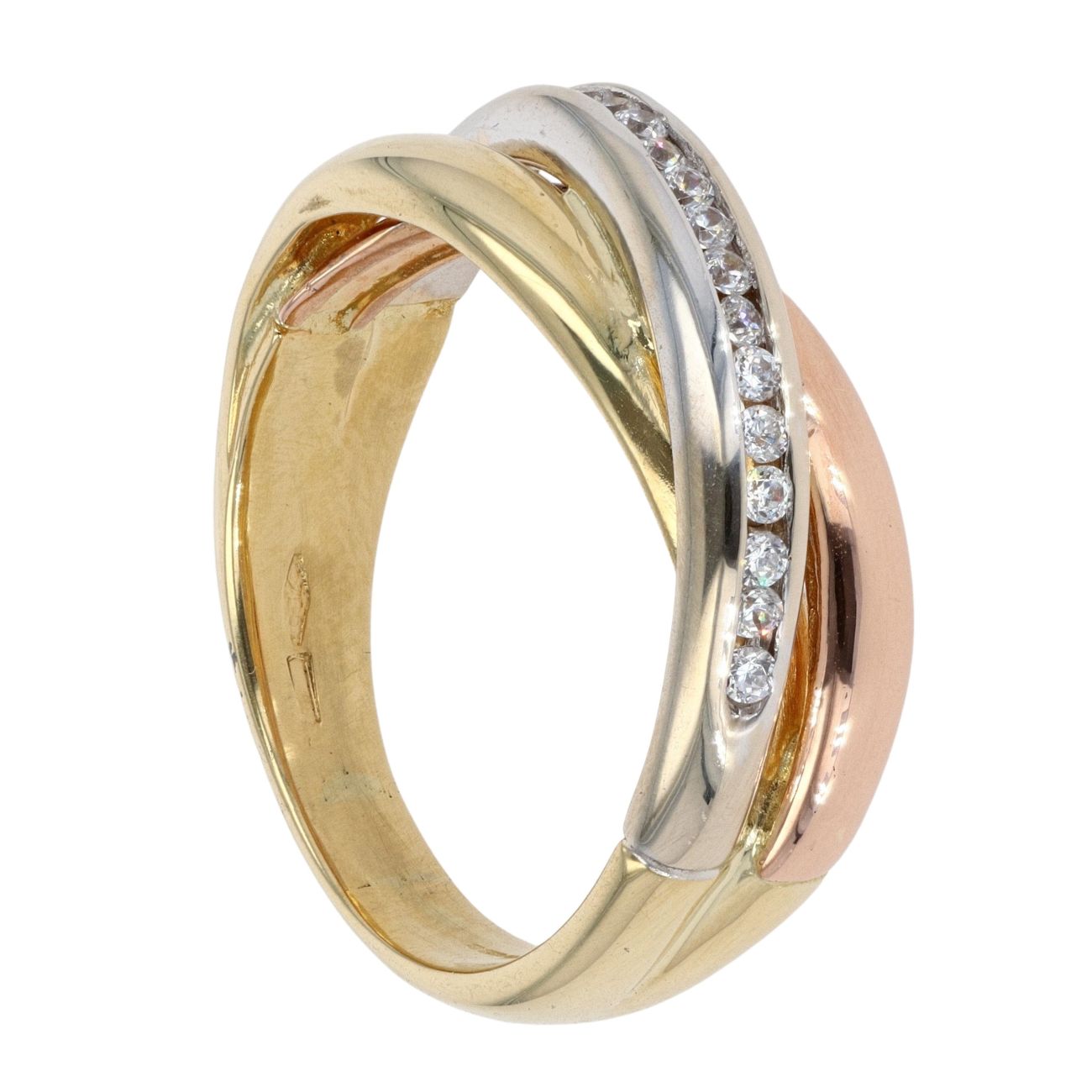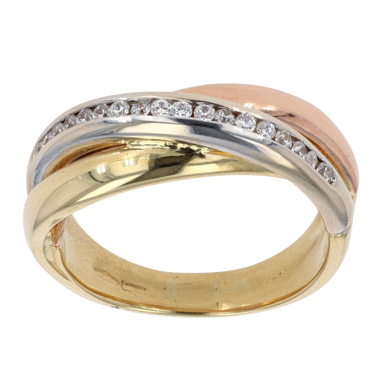 14ct Yellow White and Rose Gold Cubic Zirconia Crossover Ring