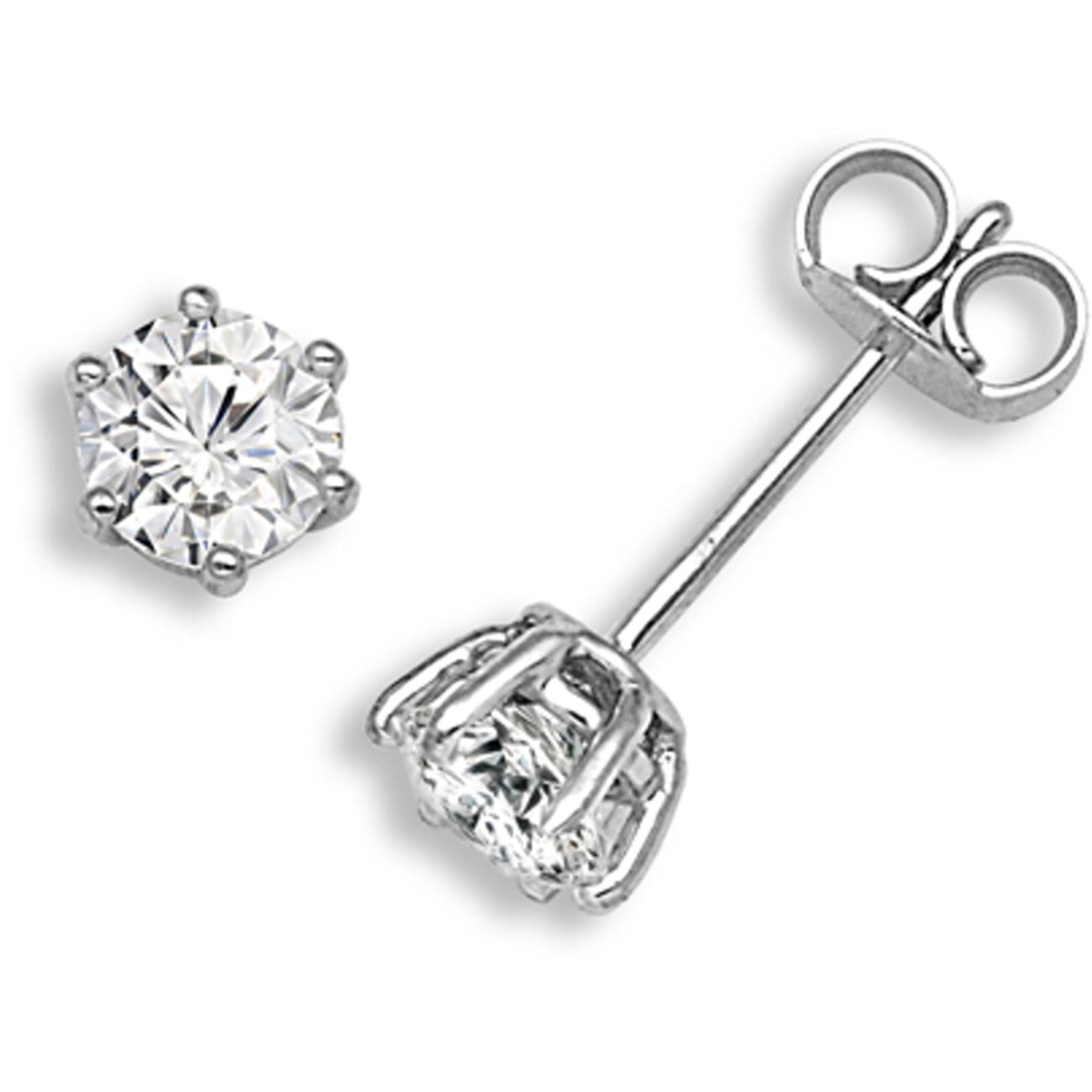 18 Carat White Gold 1.00ct 6 Claw Diamond Solitaire Stud Earrings