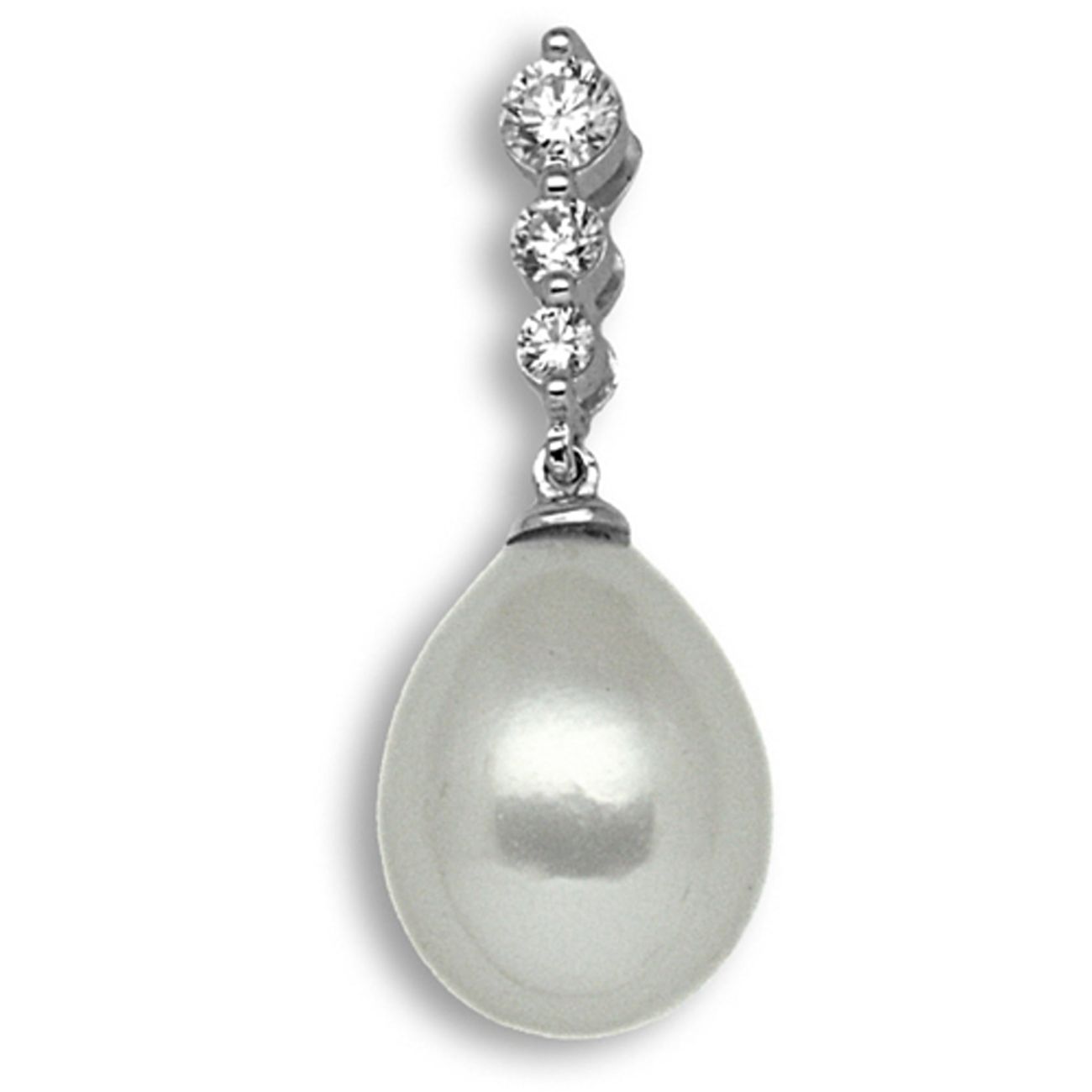18 Carat White Gold 20pts Diamond & Pearl Pendant