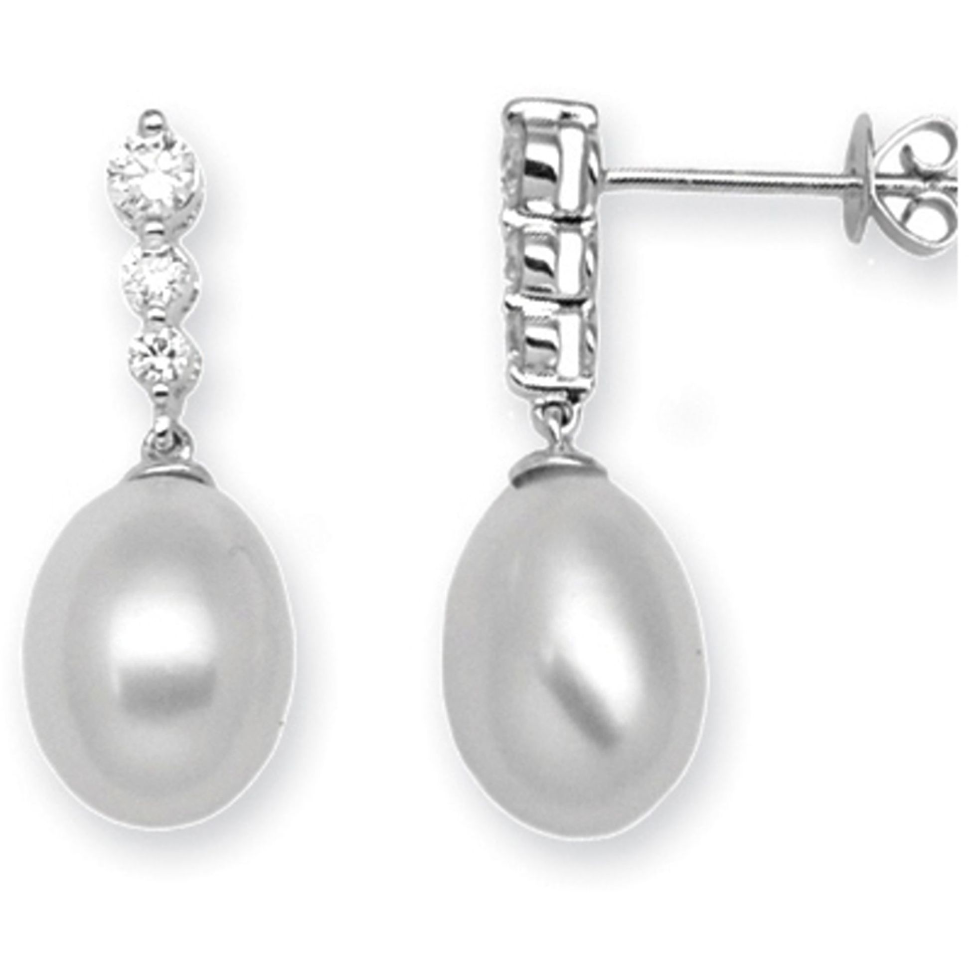 18 Carat White Gold 37pts Diamond & Pearl Earrings