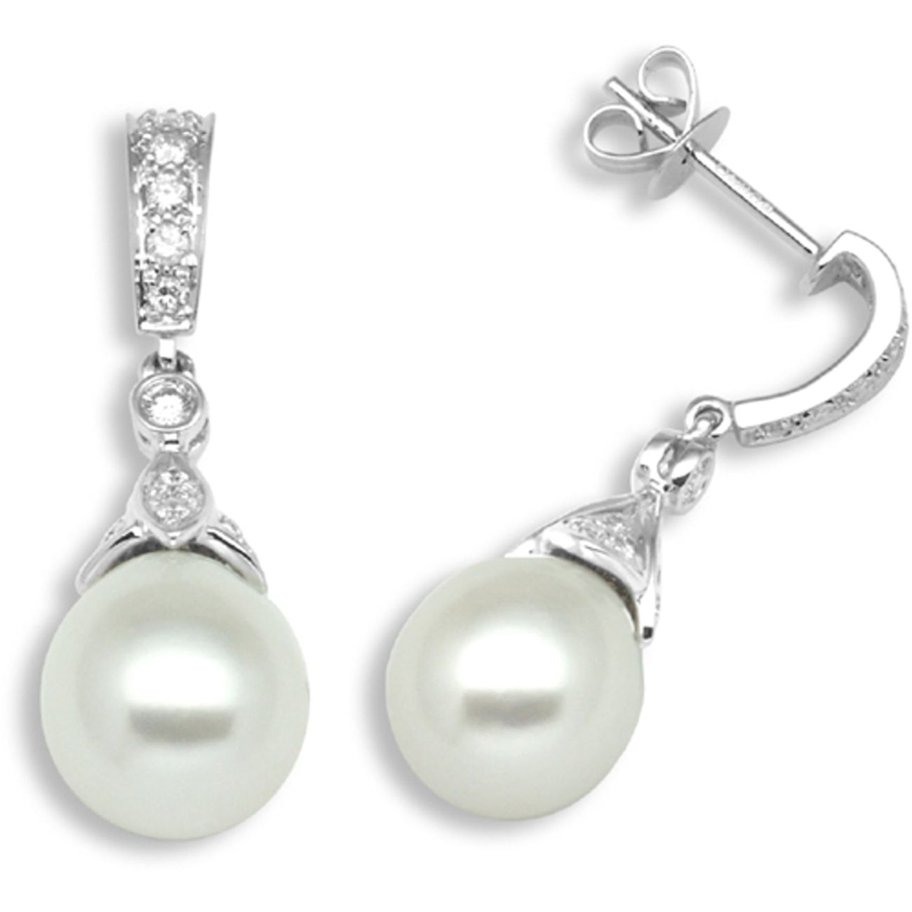 18 Carat White Gold 50pt Diamond & Pearl Drop Earrings
