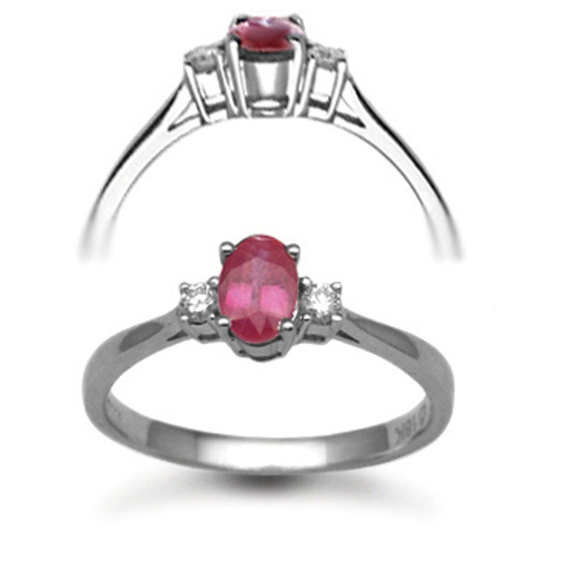 18 Carat White Gold D-8pt Ruby-70pt 3 Stone Ring