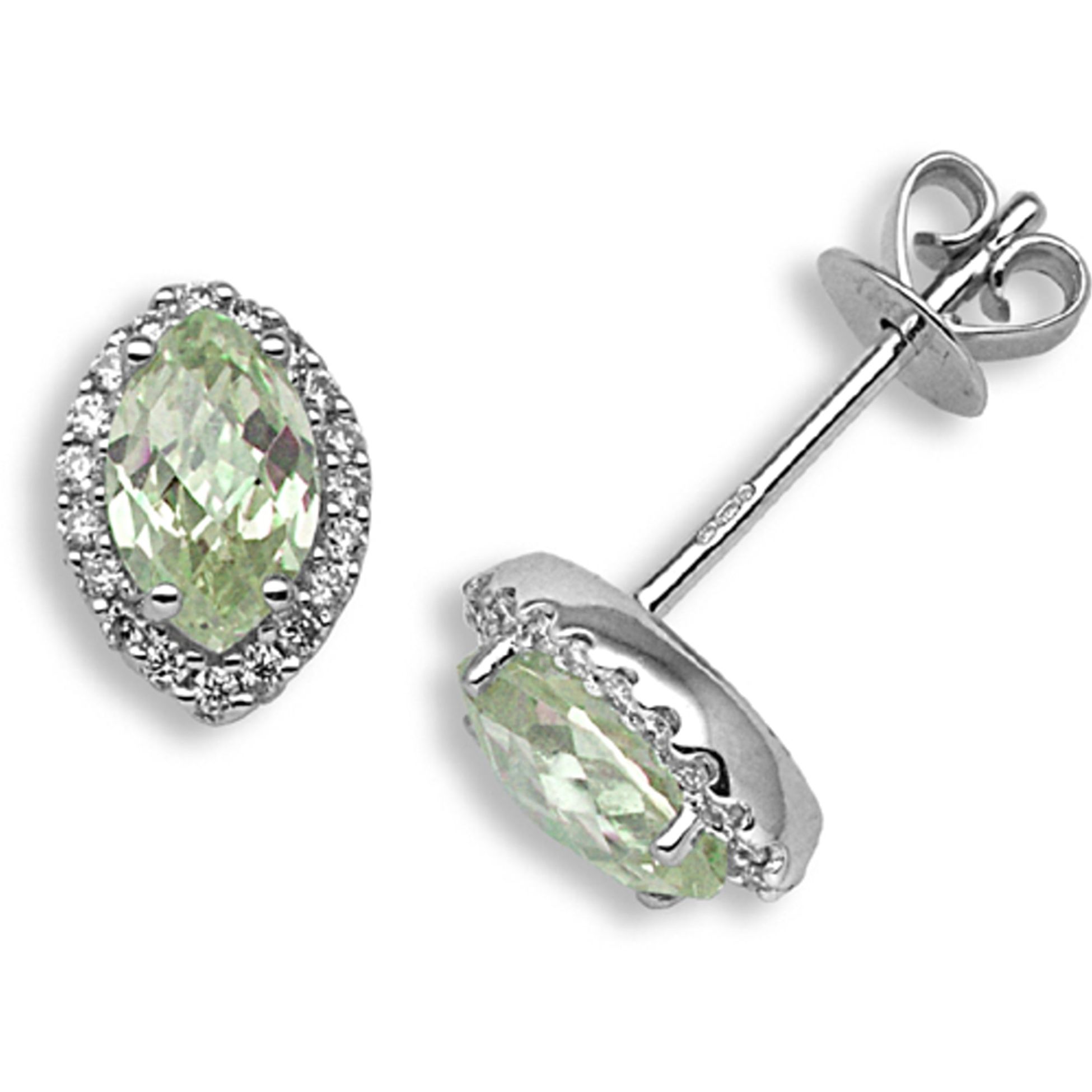18 Carat White Gold Diamond-15pt Peridot-68pts Studs