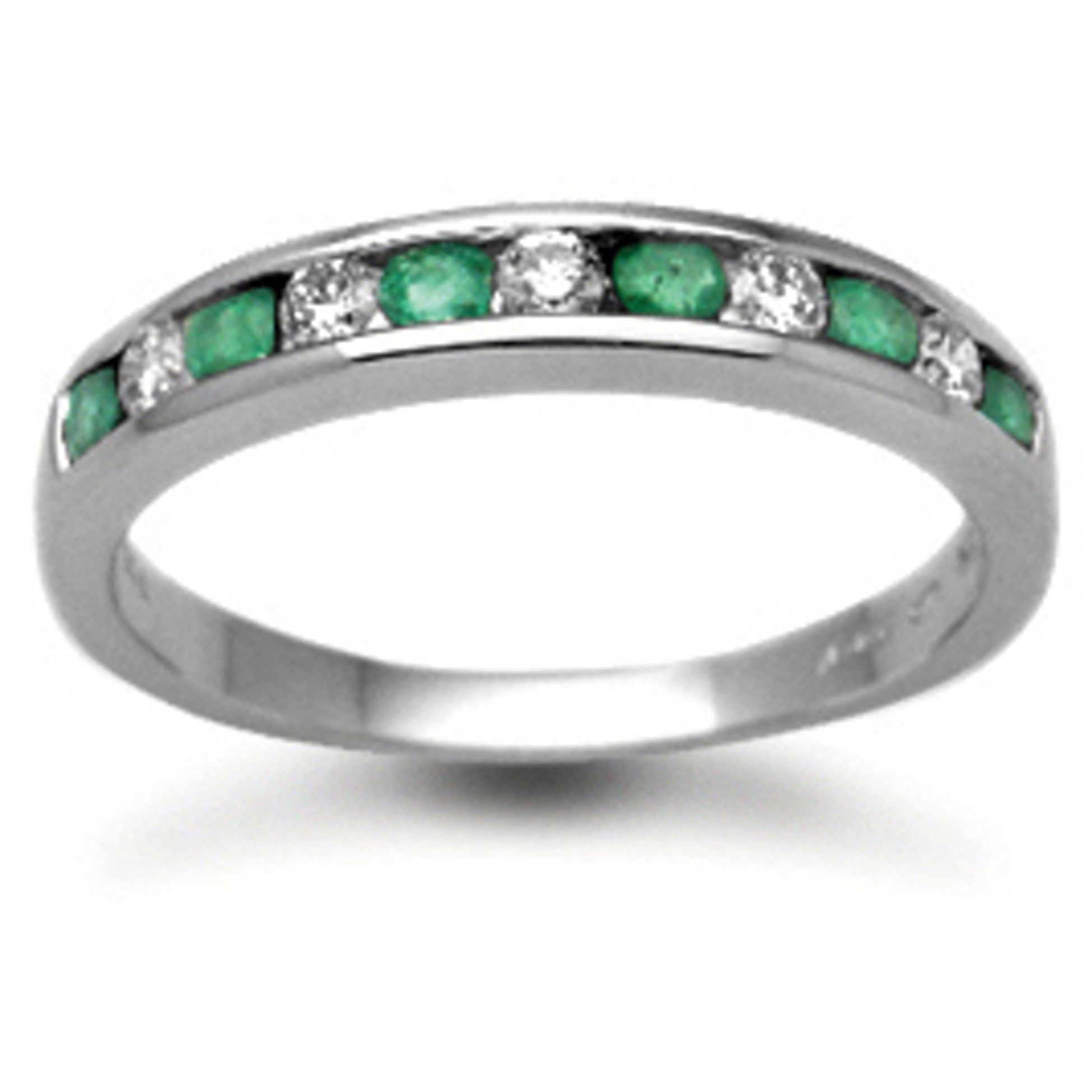 18 Carat White Gold Diamond-18pts Emerald-30pts Chan Set Half Eternity Ring