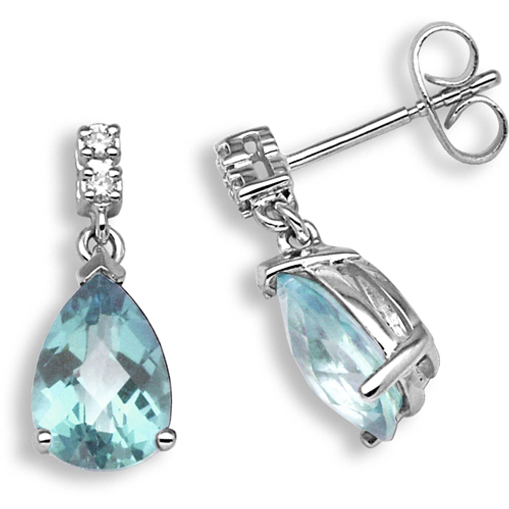 18 Carat White Gold Diamond-5pt Blue Topaz-3.03ct Earrings