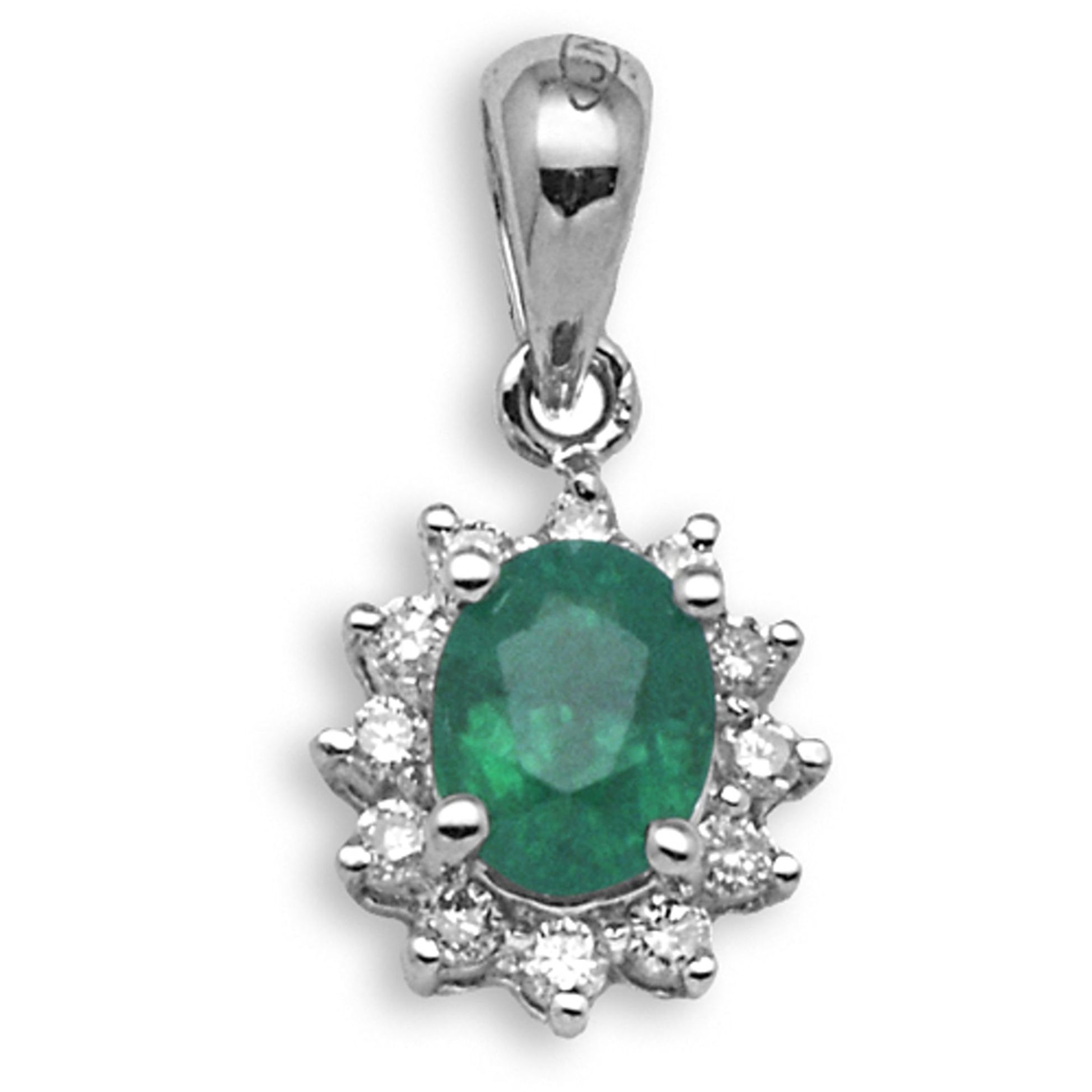 18 Carat White Gold Diamond-9pt Emerald-36pt Pendant