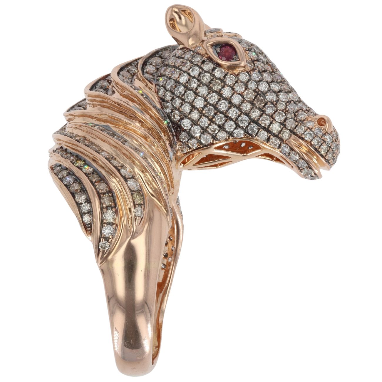 18ct Rose Gold 4.50ct Brilliant Cut Diamond And Ruby Horse Ring