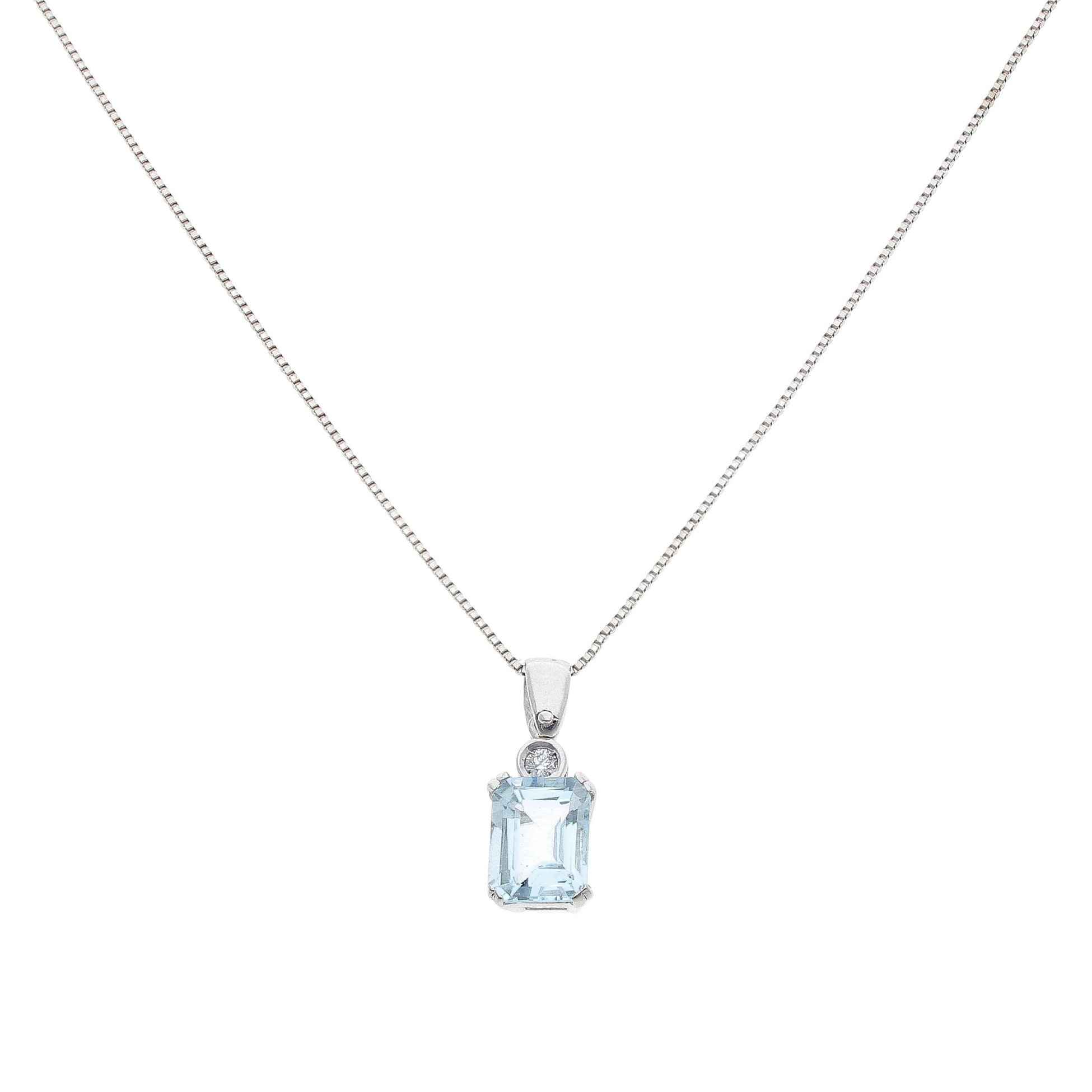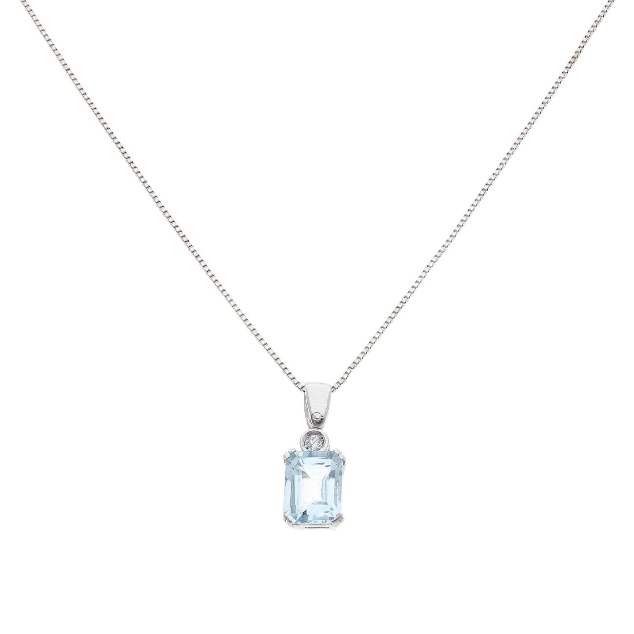 18ct White Gold 0.05ct Brilliant Cut Diamond And Aquamarine Pendant And Chain 16"