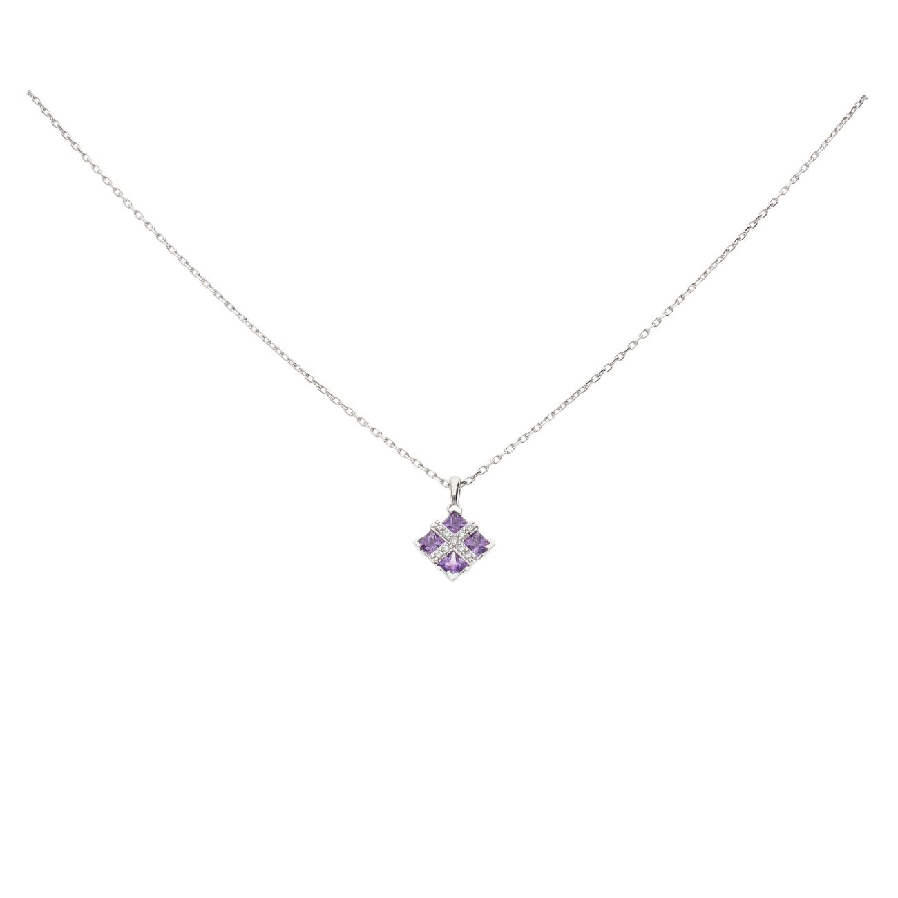 18ct White Gold 0.05ct Diamond Amethyst Pendant And Chain 18"