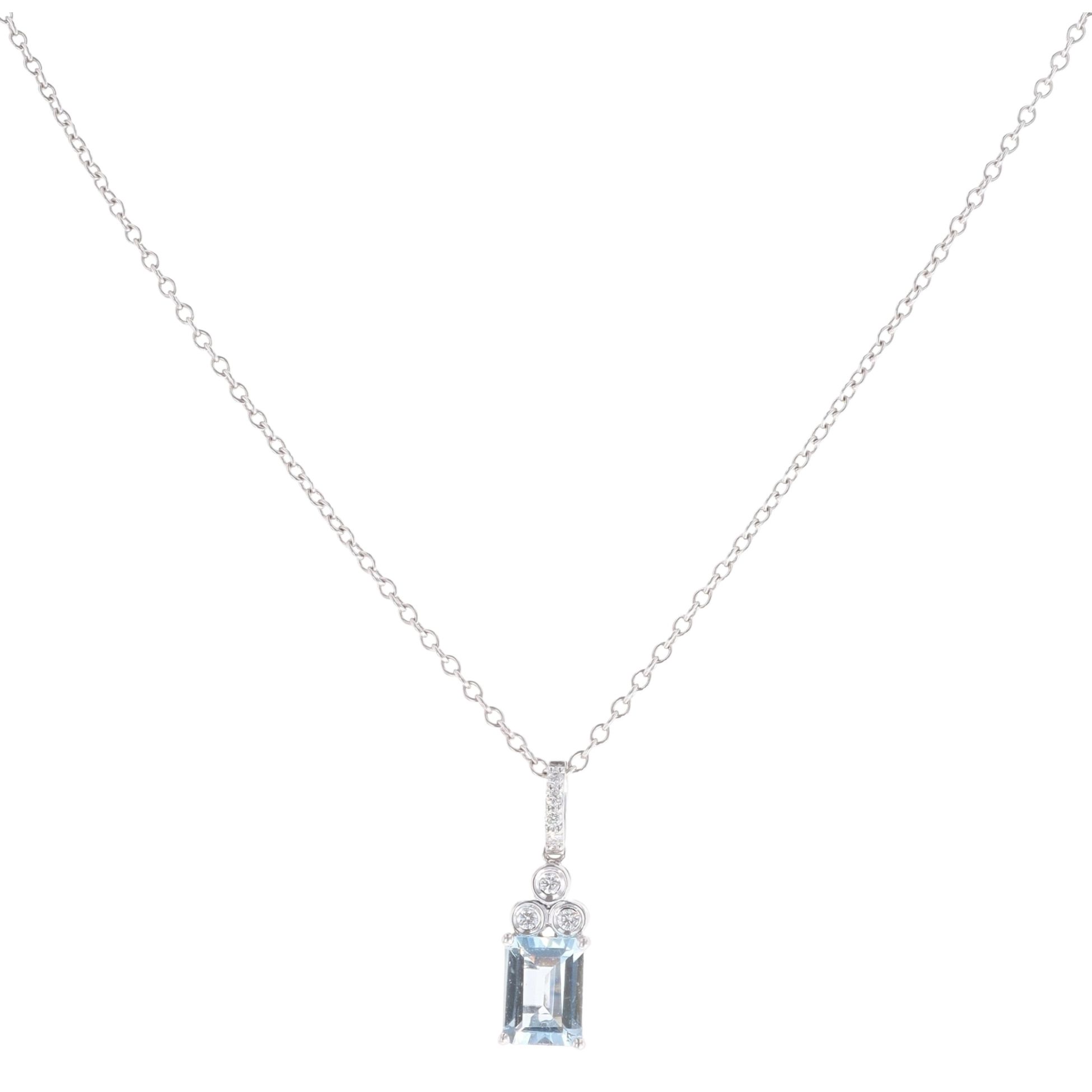 18ct White Gold 0.10ct Diamond And Aquamarine Pendant And Chain 18"