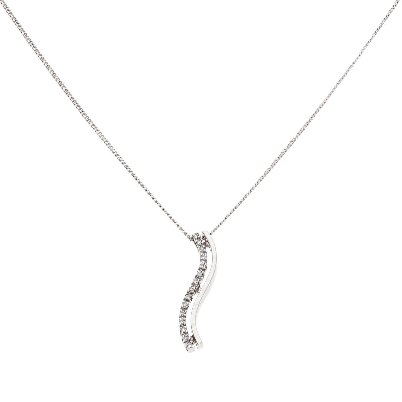 18ct White Gold 0.10ct Diamond Wave Pendant And Chain 18"