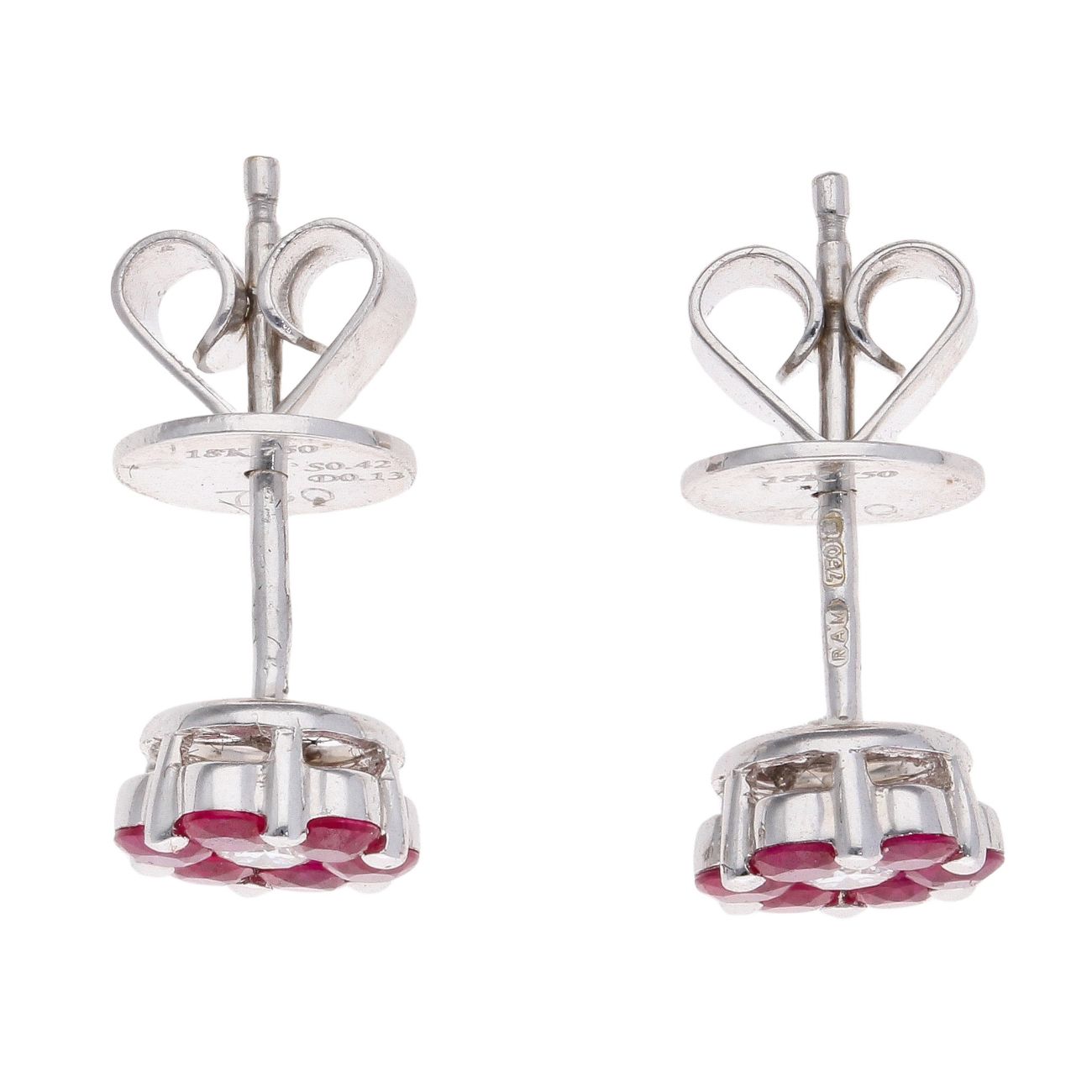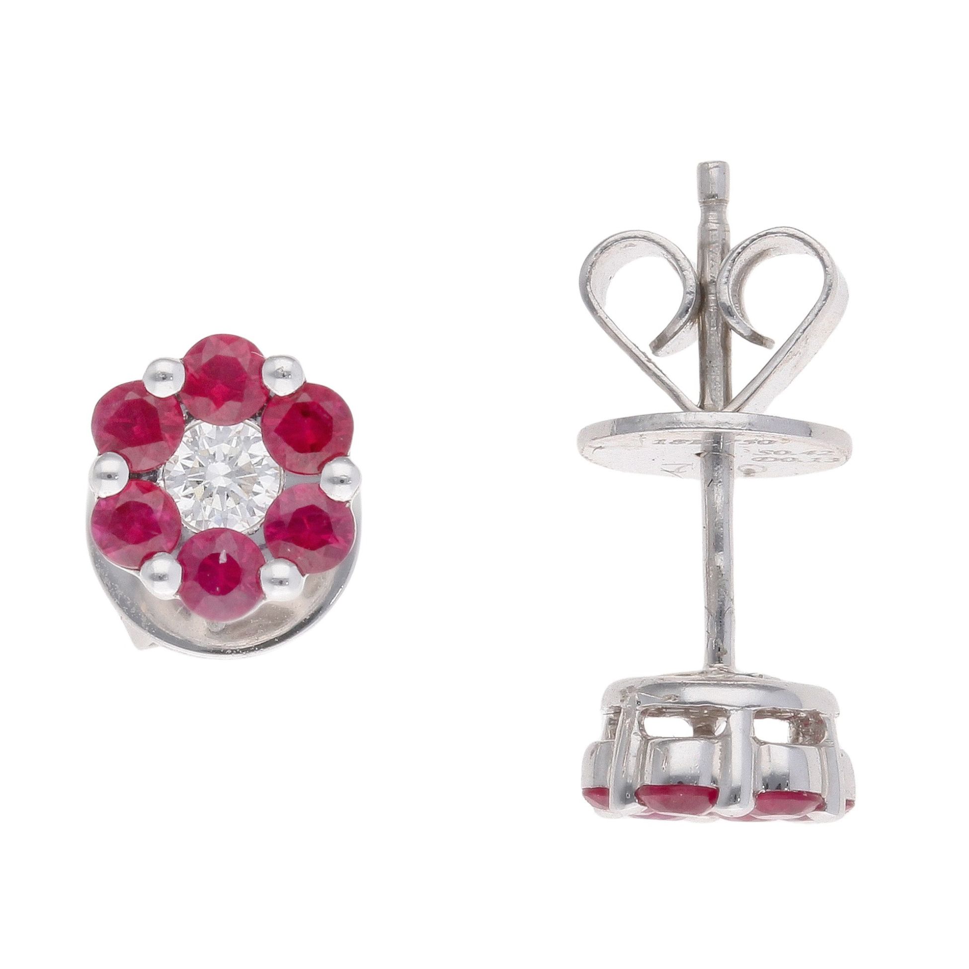 18ct White Gold 0.14ct Diamond And Ruby Stud Earrings