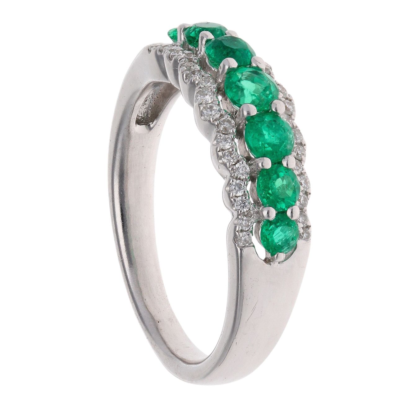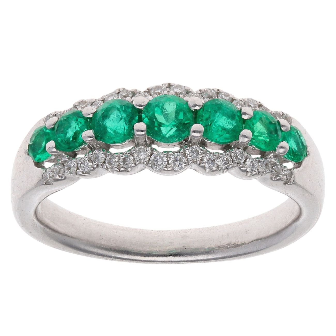 18ct White Gold 0.20ct Diamond And Emerald Cluster Ring
