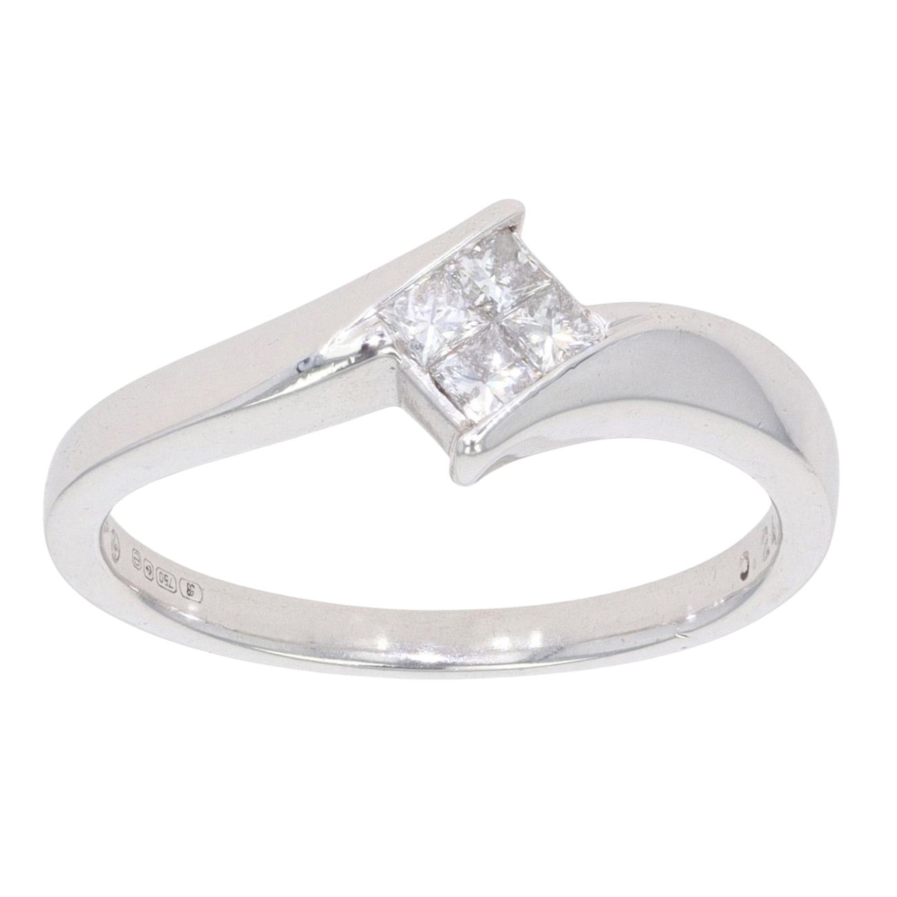 18ct White Gold 0.24ct Princess Cut Diamond Twist Cluster Ring