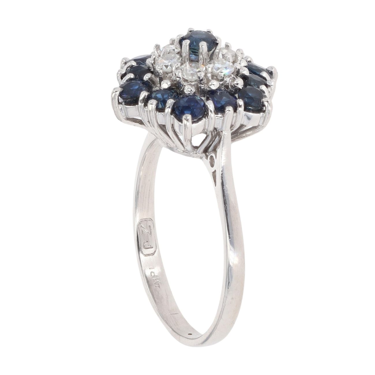 18ct White Gold 0.25ct Diamond And Sapphire Cluster Ring