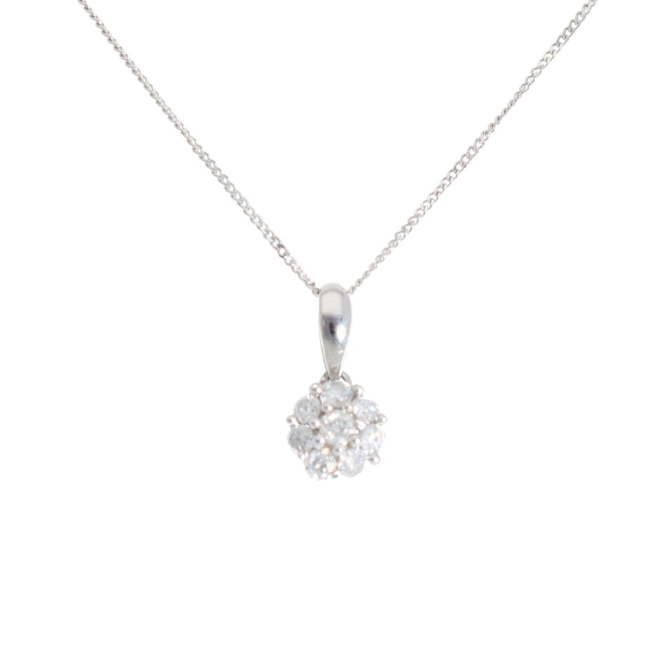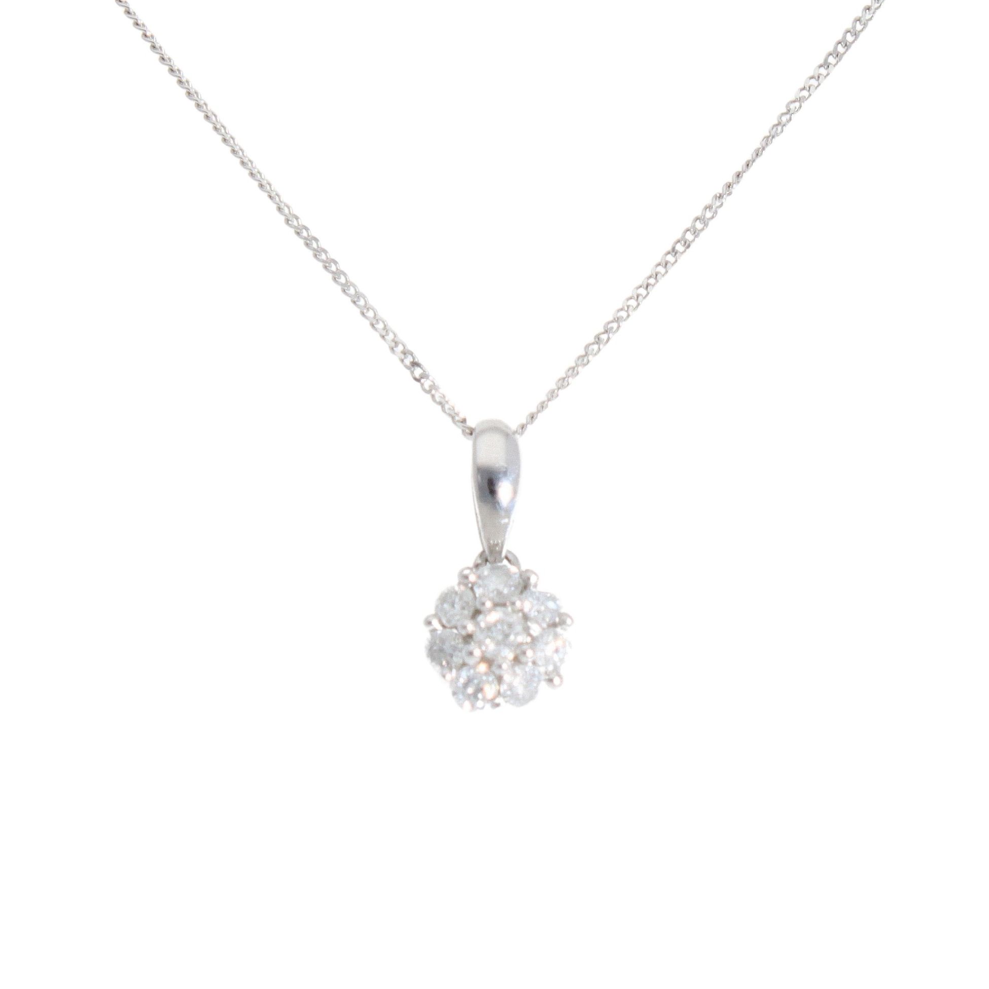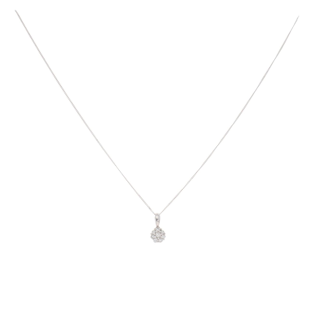 18ct White Gold 0.25ct Diamond Cluster Pendant And Chain 18"