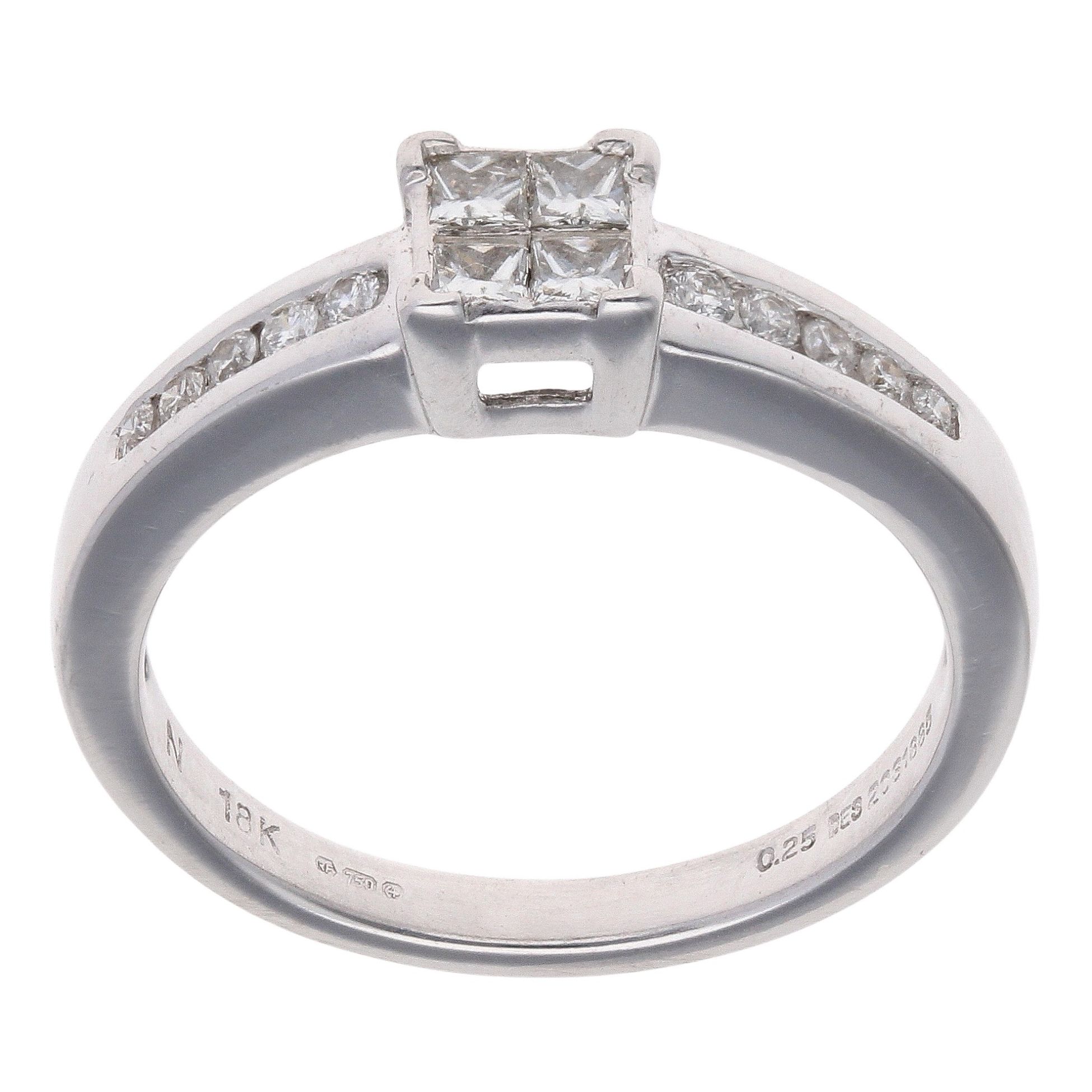 18ct White Gold 0.25ct Princess and Brilliant Cut Diamond Cluster Ring