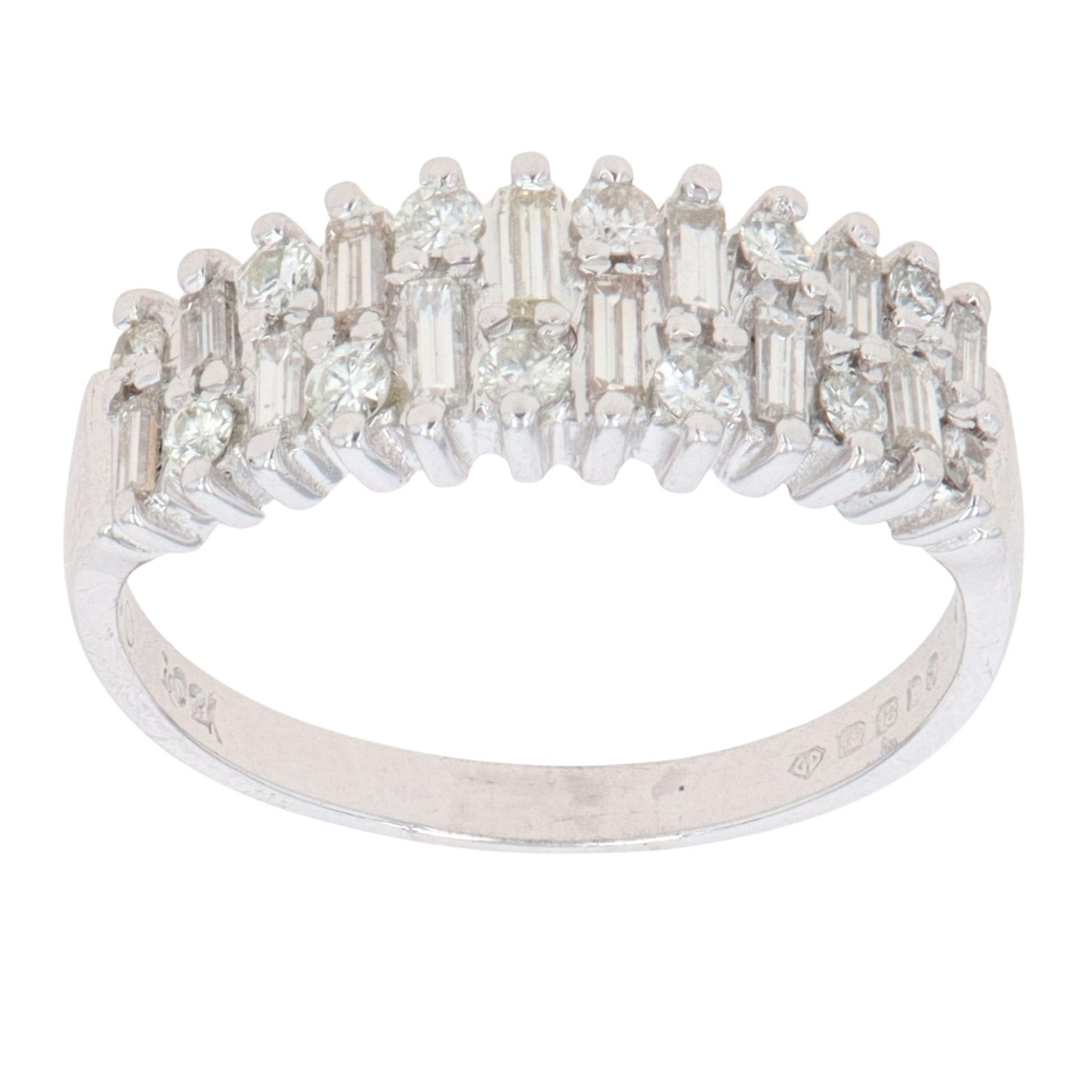 18ct White Gold 0.30ct Brilliant and Baguette Cut Diamond Cluster Ring