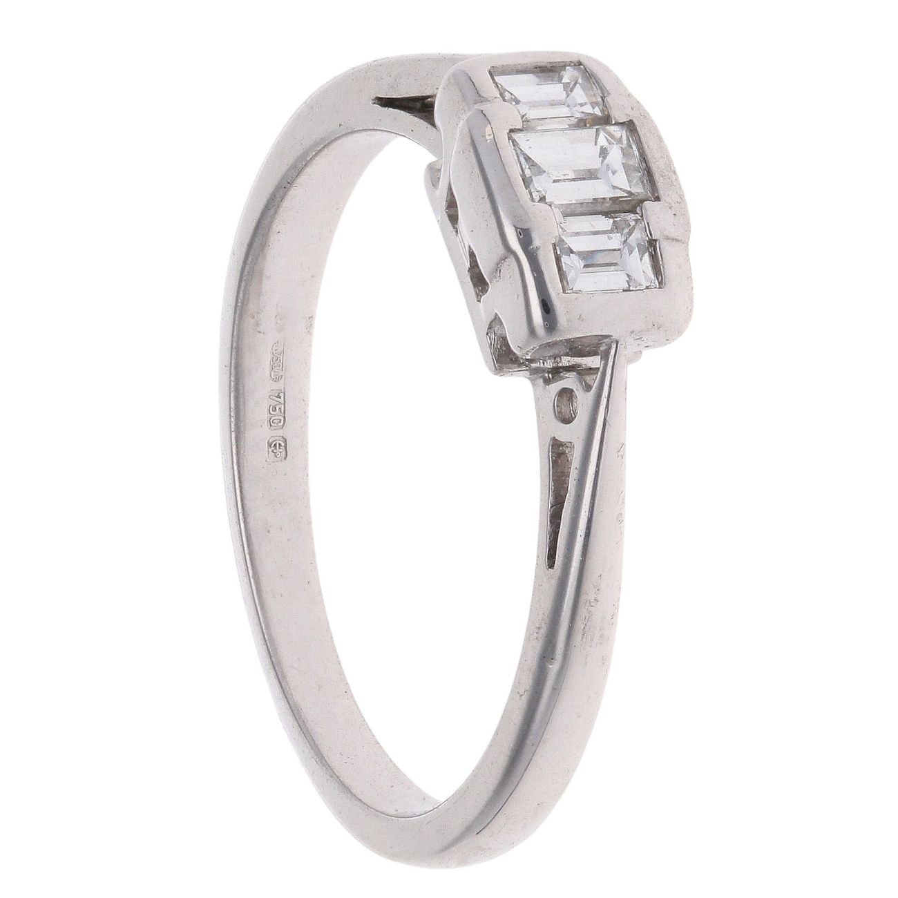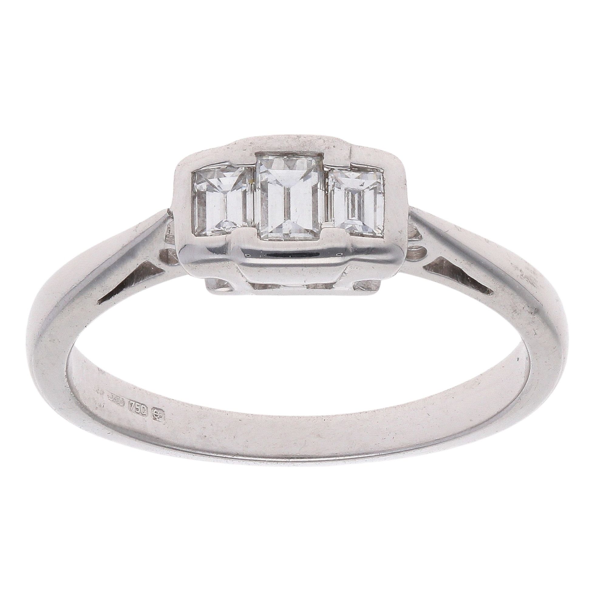 18ct White Gold 0.33ct Baguette Cut Diamond Trilogy Ring