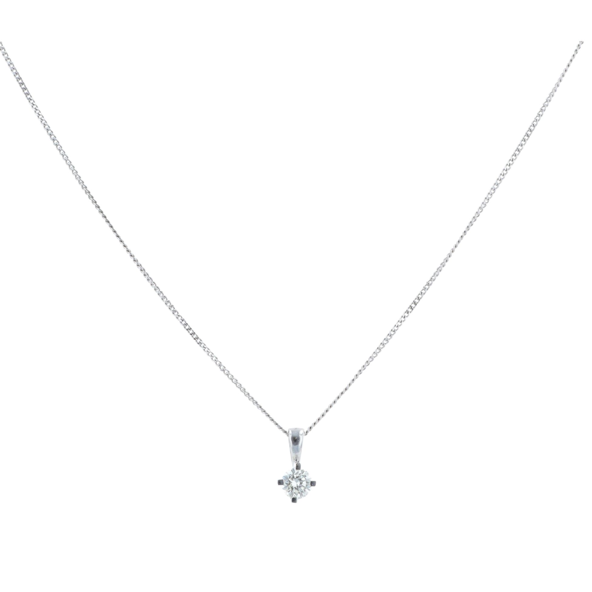 18ct White Gold 0.33ct Brilliant Cut Diamond Solitaire Pendant And Chain 16"
