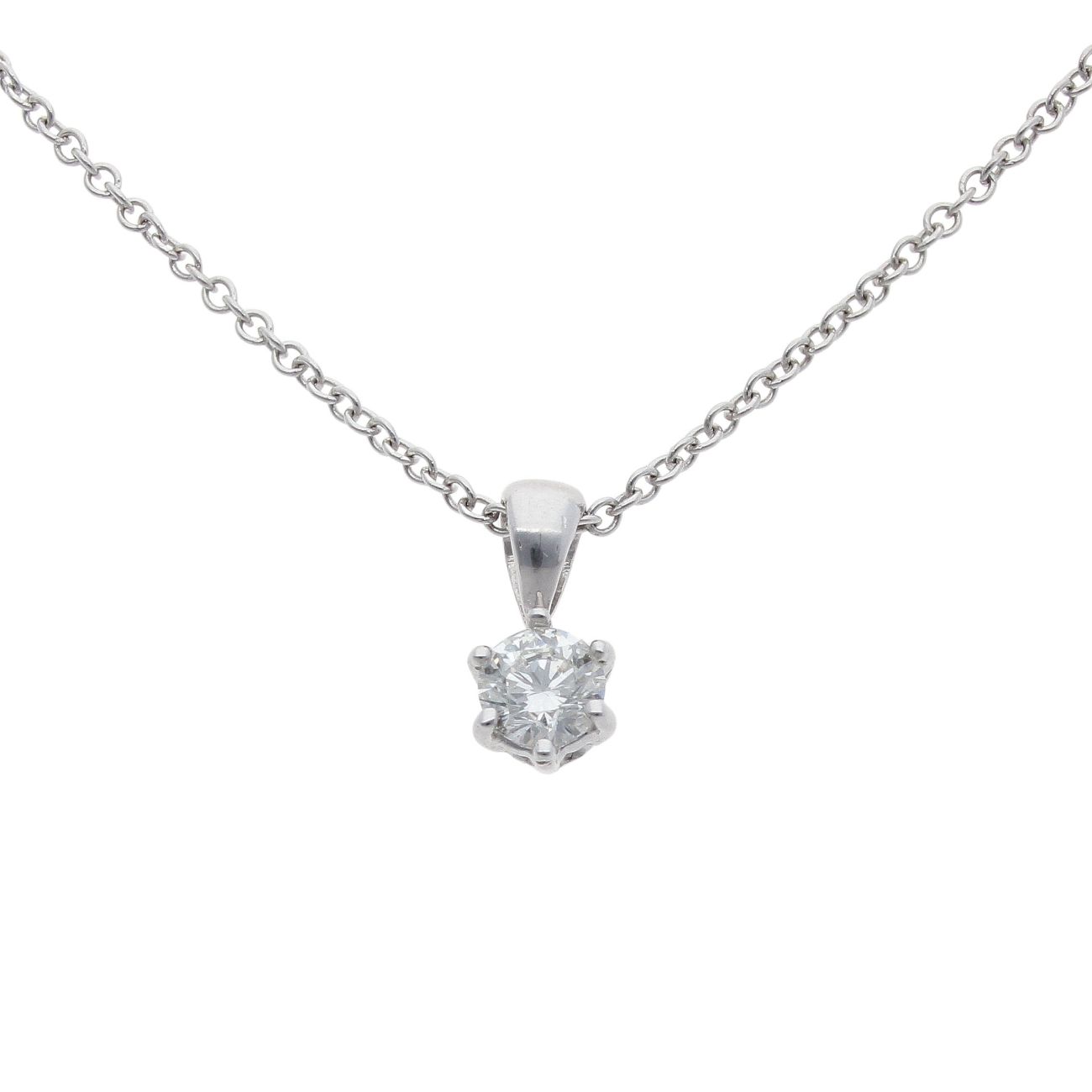 18ct White Gold 0.33ct Brilliant Cut Diamond Solitaire Pendant And Chain 18"