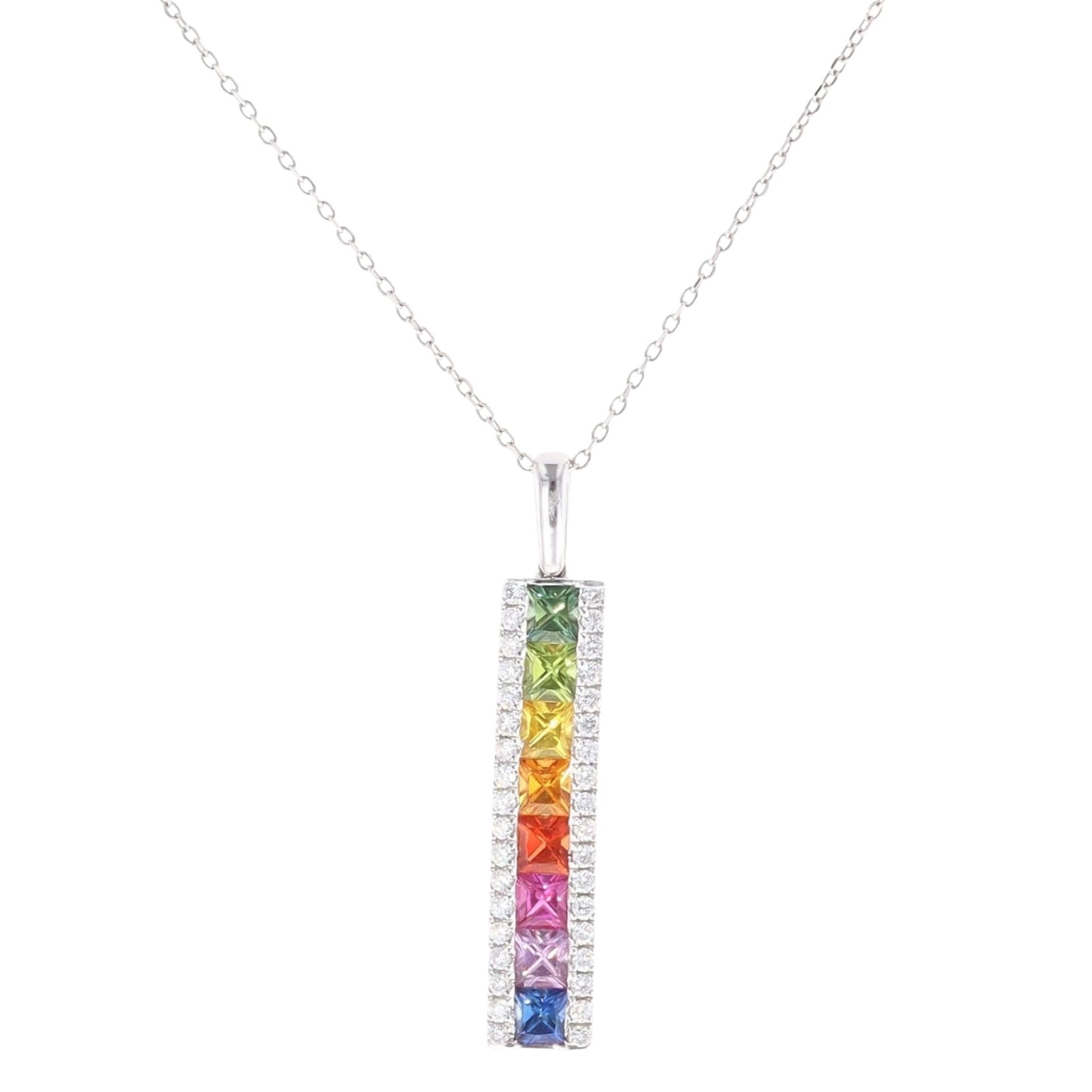 18ct White Gold 0.35ct Brilliant Cut Diamond And Multi-Gemstone Pendant And Chain 18"