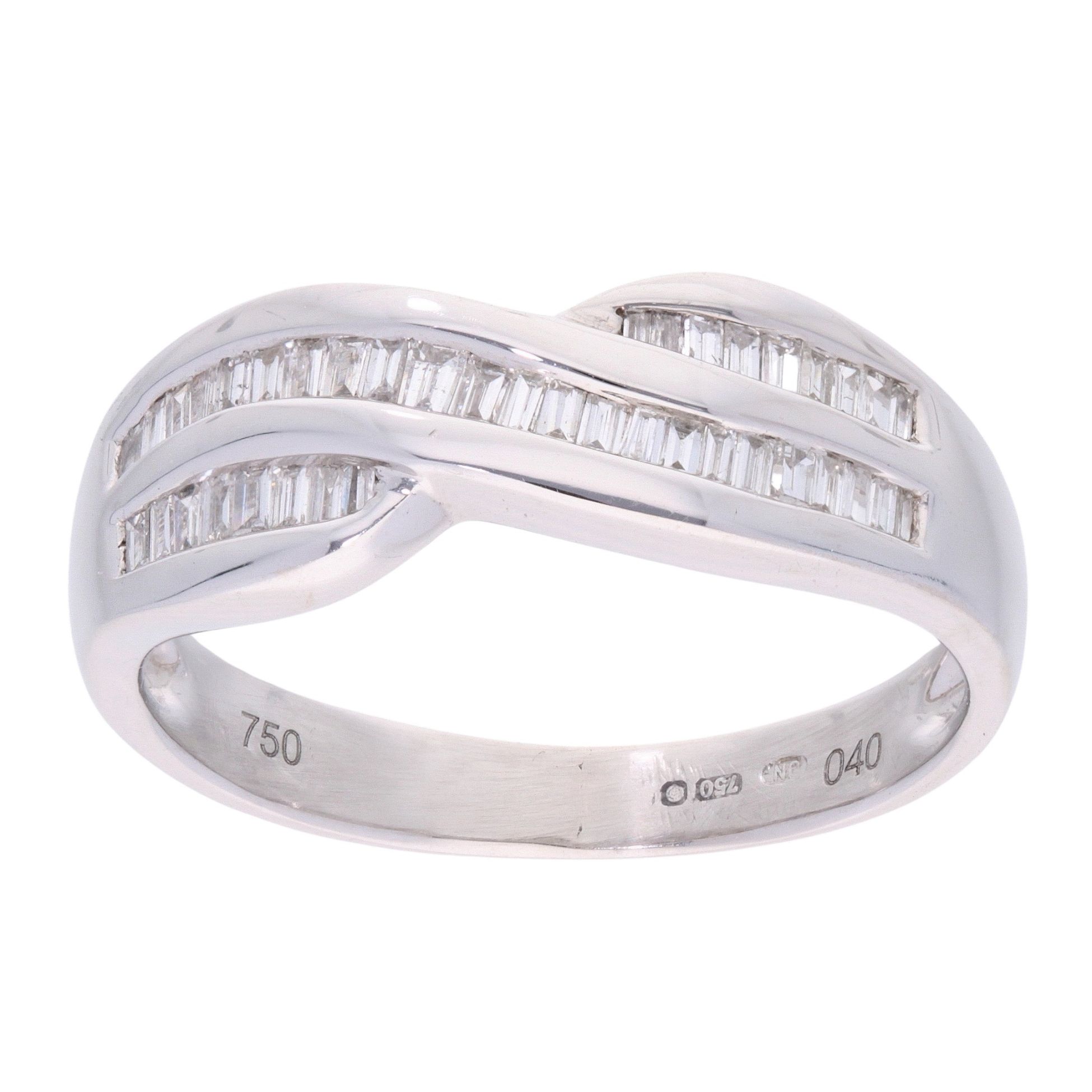 18ct White Gold 0.40ct Baguette Cut Diamond Crossover Ring