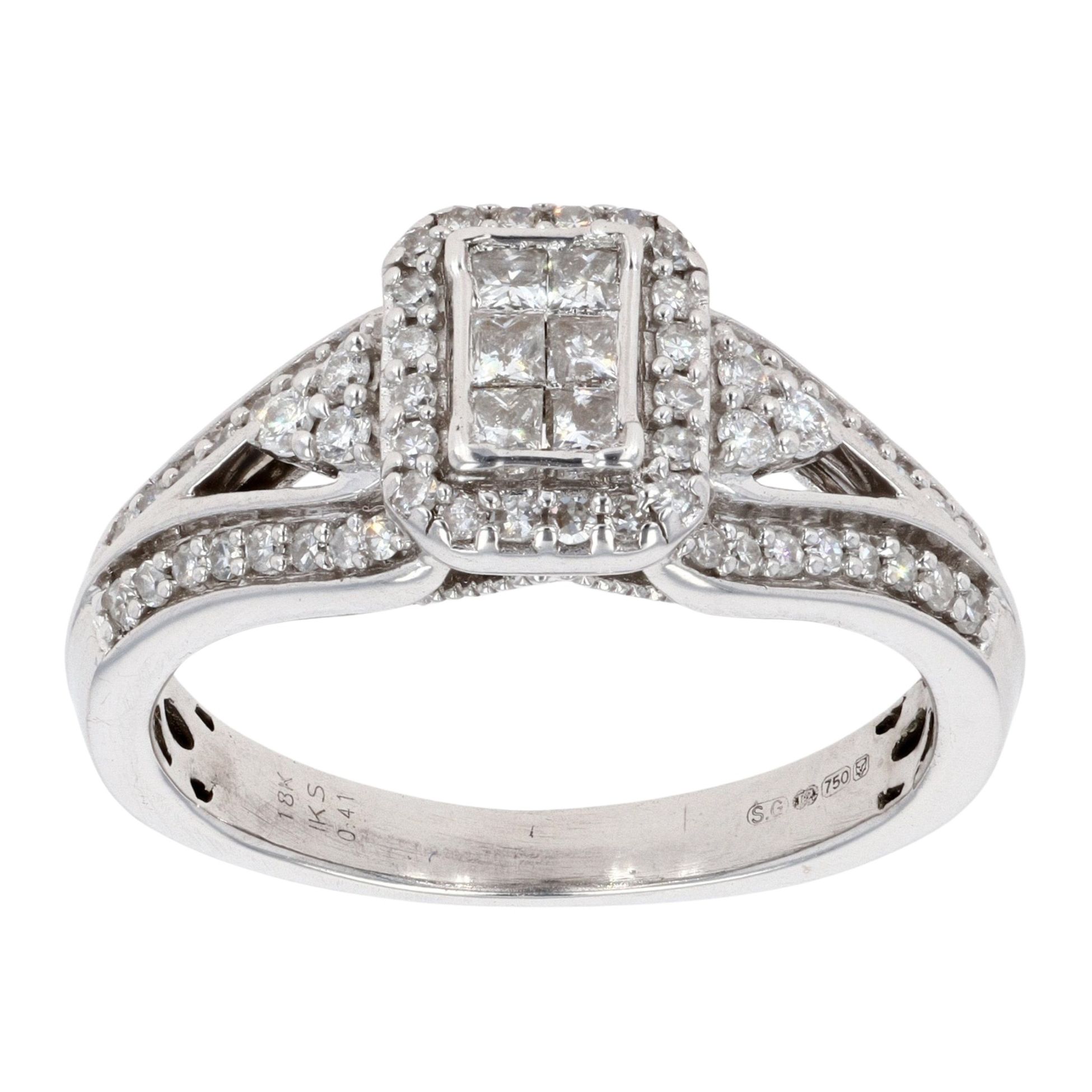 18ct White Gold 0.41ct Princess Cut Diamond Cluster Ring