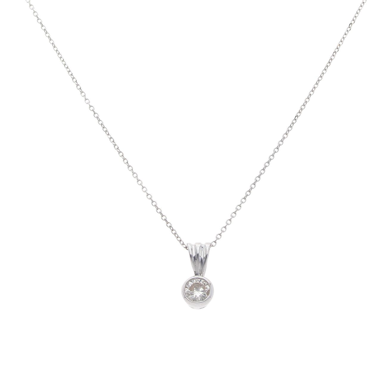 18ct White Gold 0.50ct Brilliant Cut Diamond Solitaire Pendant and Chain 18"