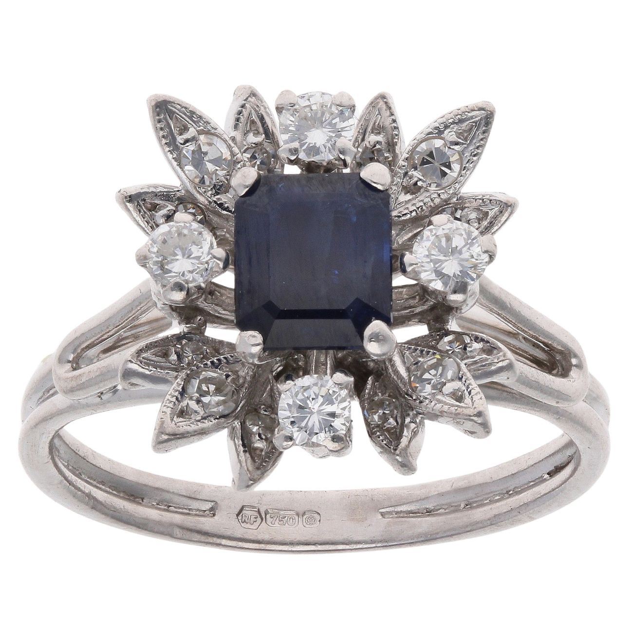 18ct White Gold 0.50ct Diamond And Sapphire Cluster Ring