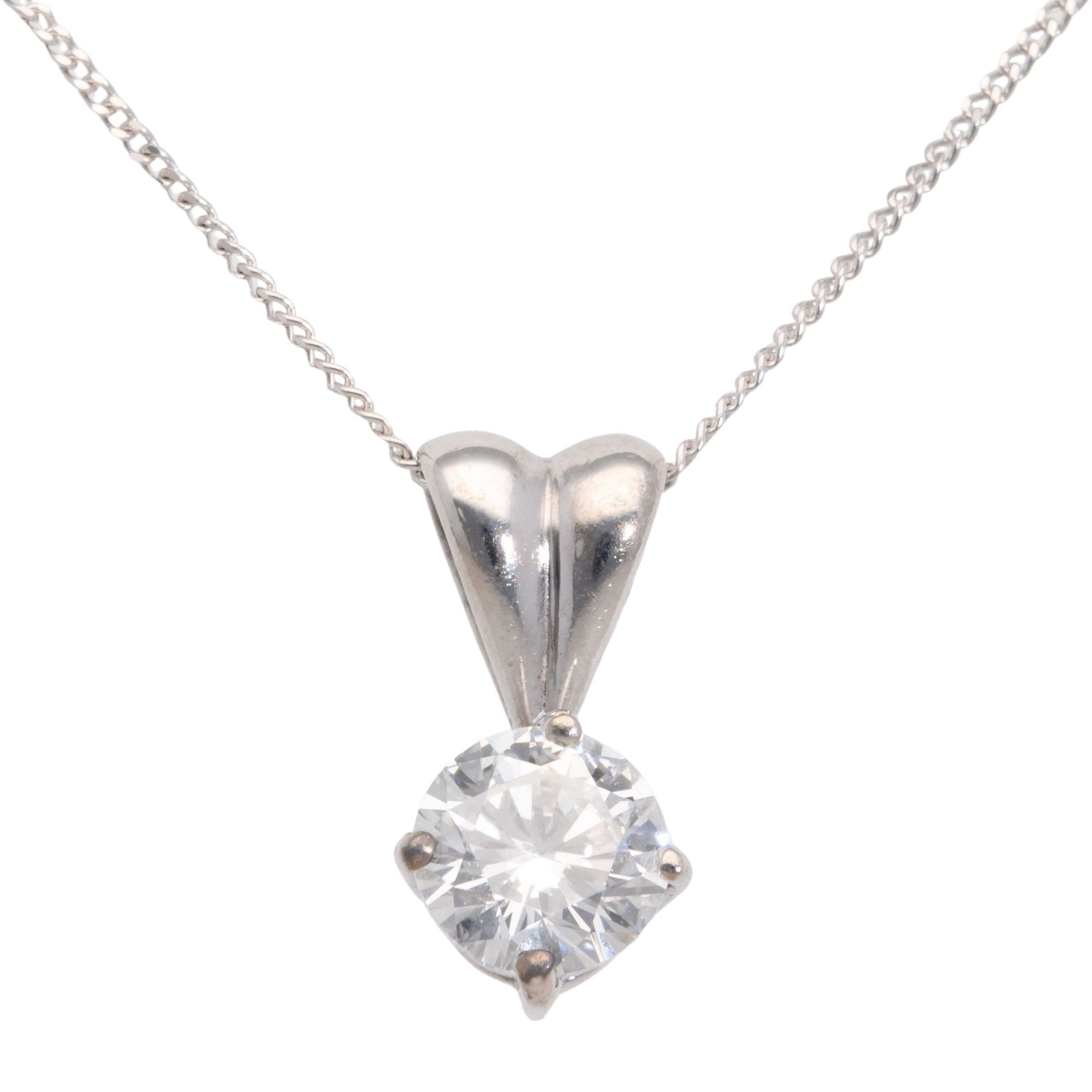 18ct White Gold 0.50ct Diamond Solitaire Pendant and Chain 18"