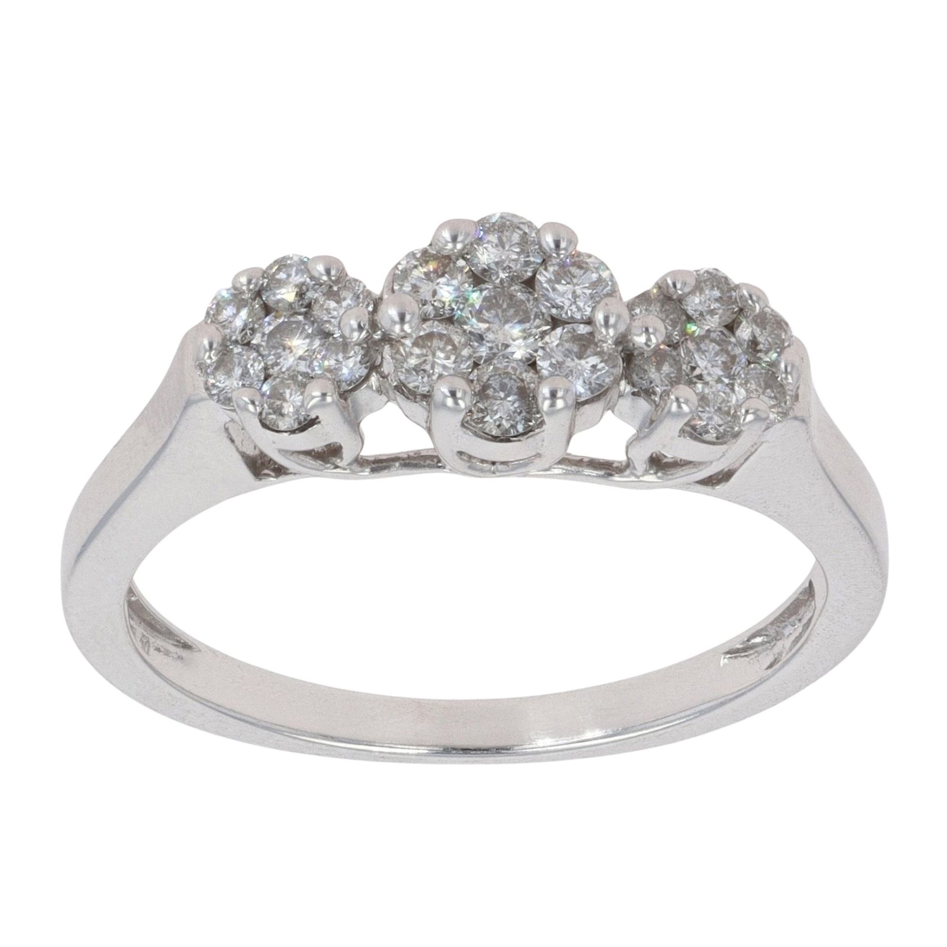 18ct White Gold 0.50ct Diamond Triple Cluster Ring