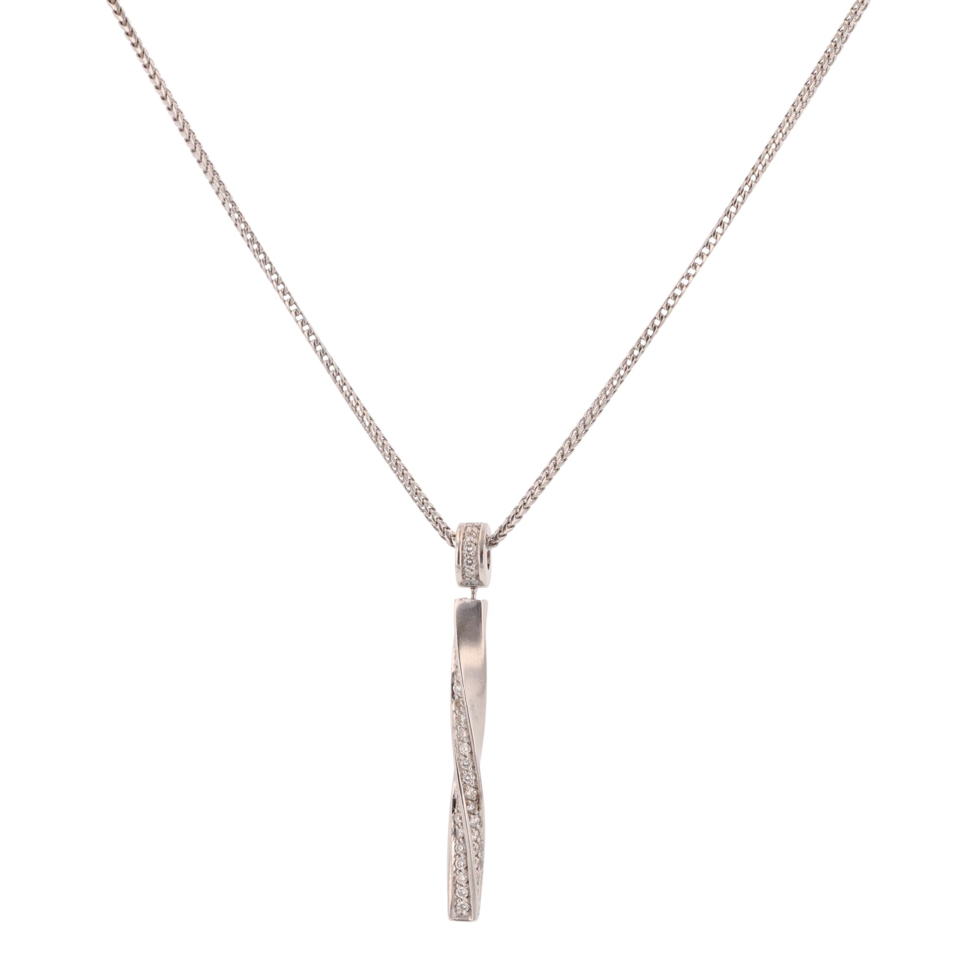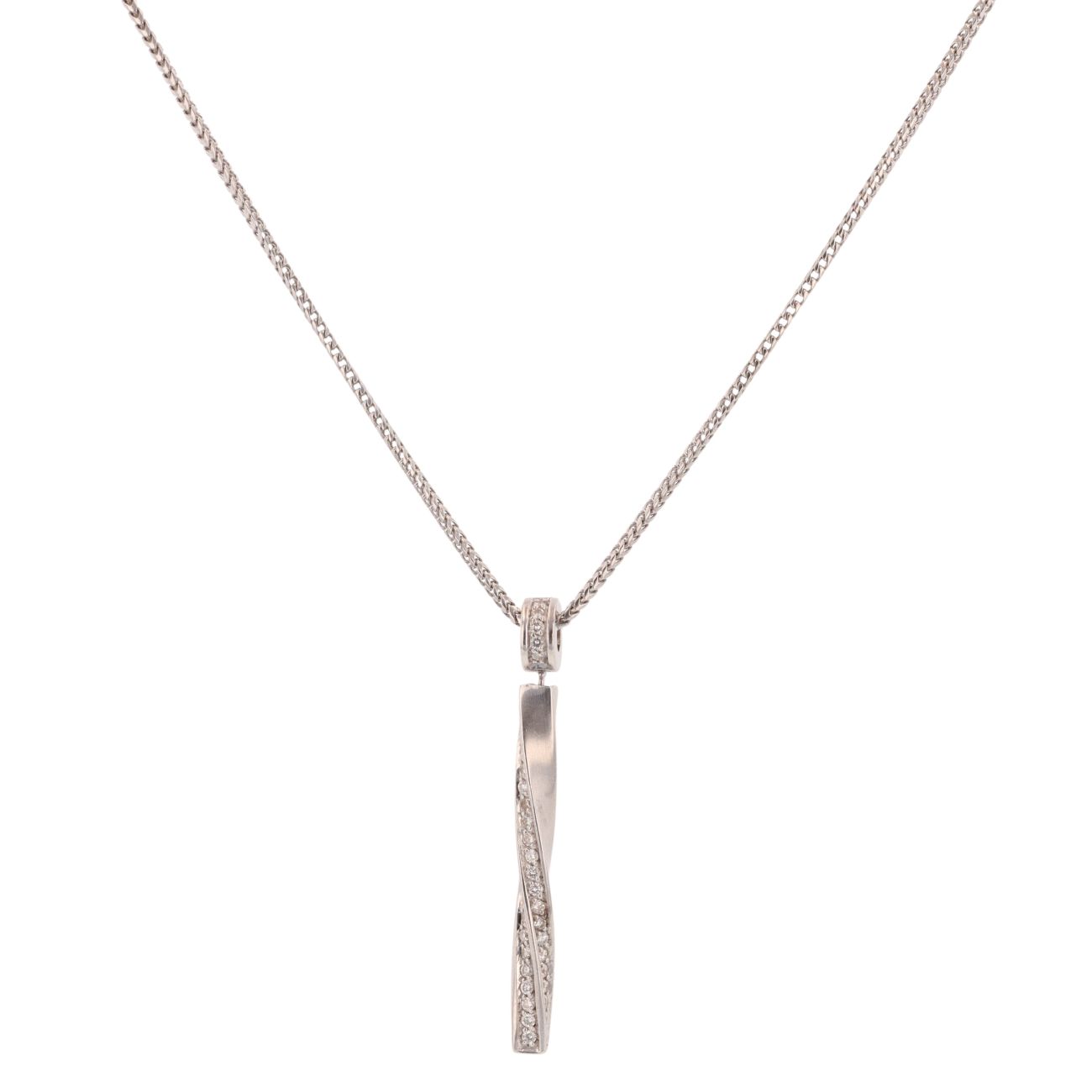 18ct White Gold 0.50ct Diamond Twist Bar Pendant and Chain 18"