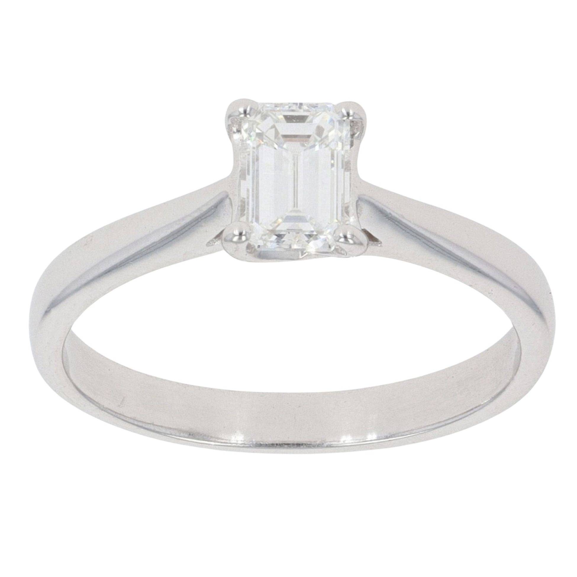 18ct White Gold 0.50ct Emerald Cut Diamond Solitaire Ring