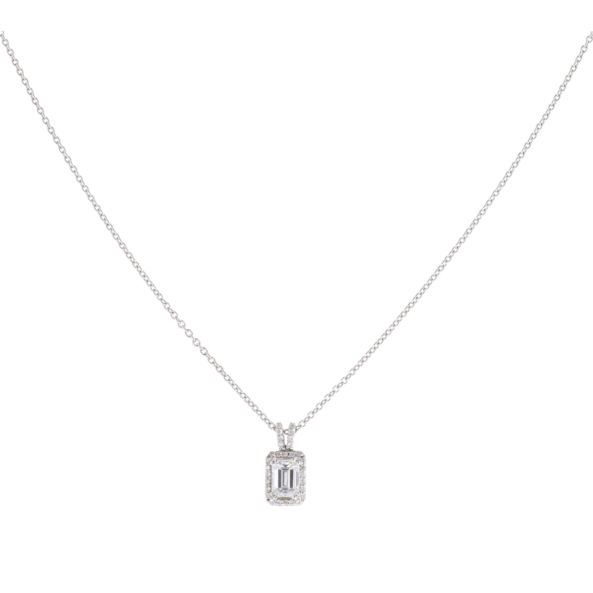 18ct White Gold 0.55ct Emerald And Brilliant Cut Diamond Cluster Pendant And Chain 16"