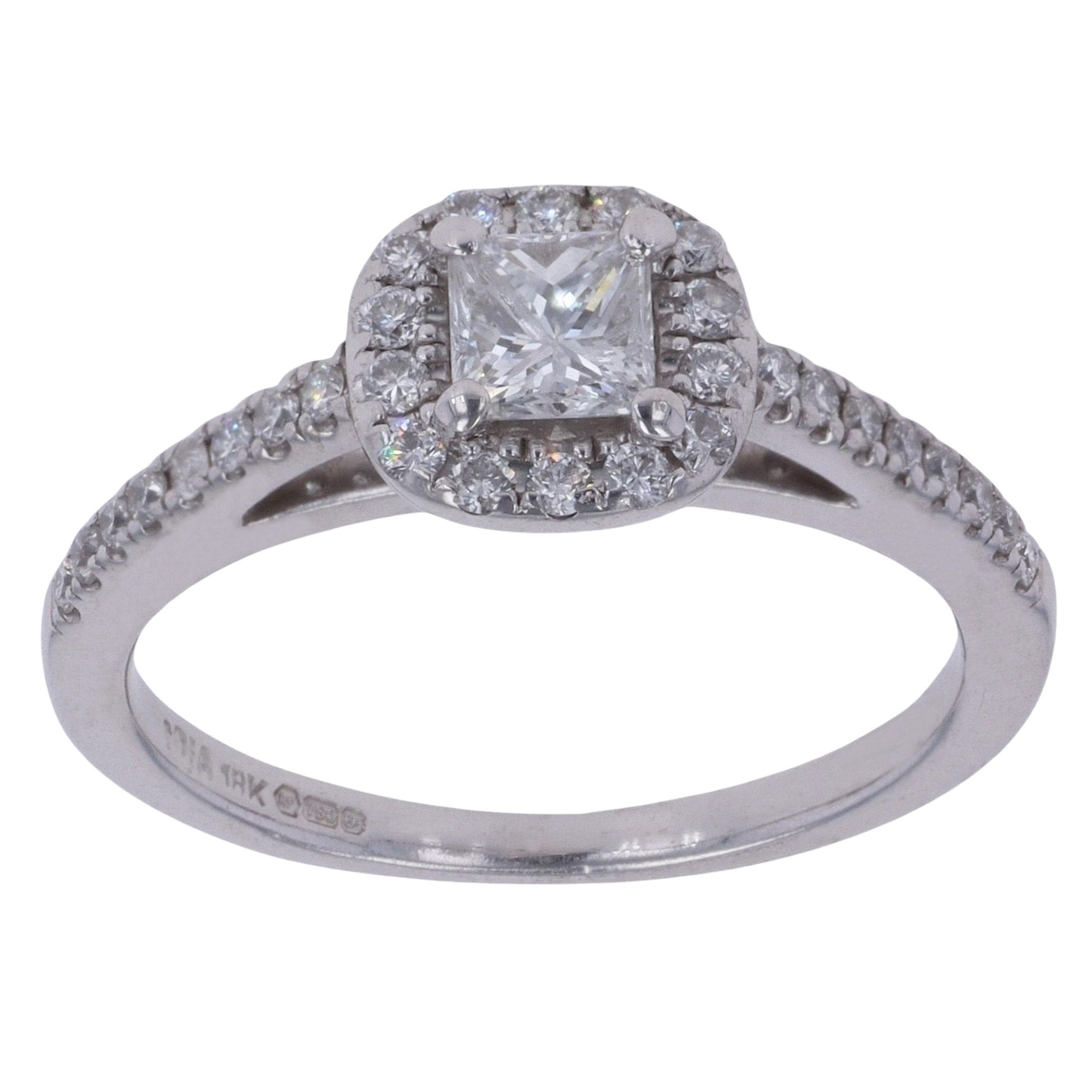 18ct White Gold 0.60ct Princess And Brilliant Cut Diamond Cluster Ring