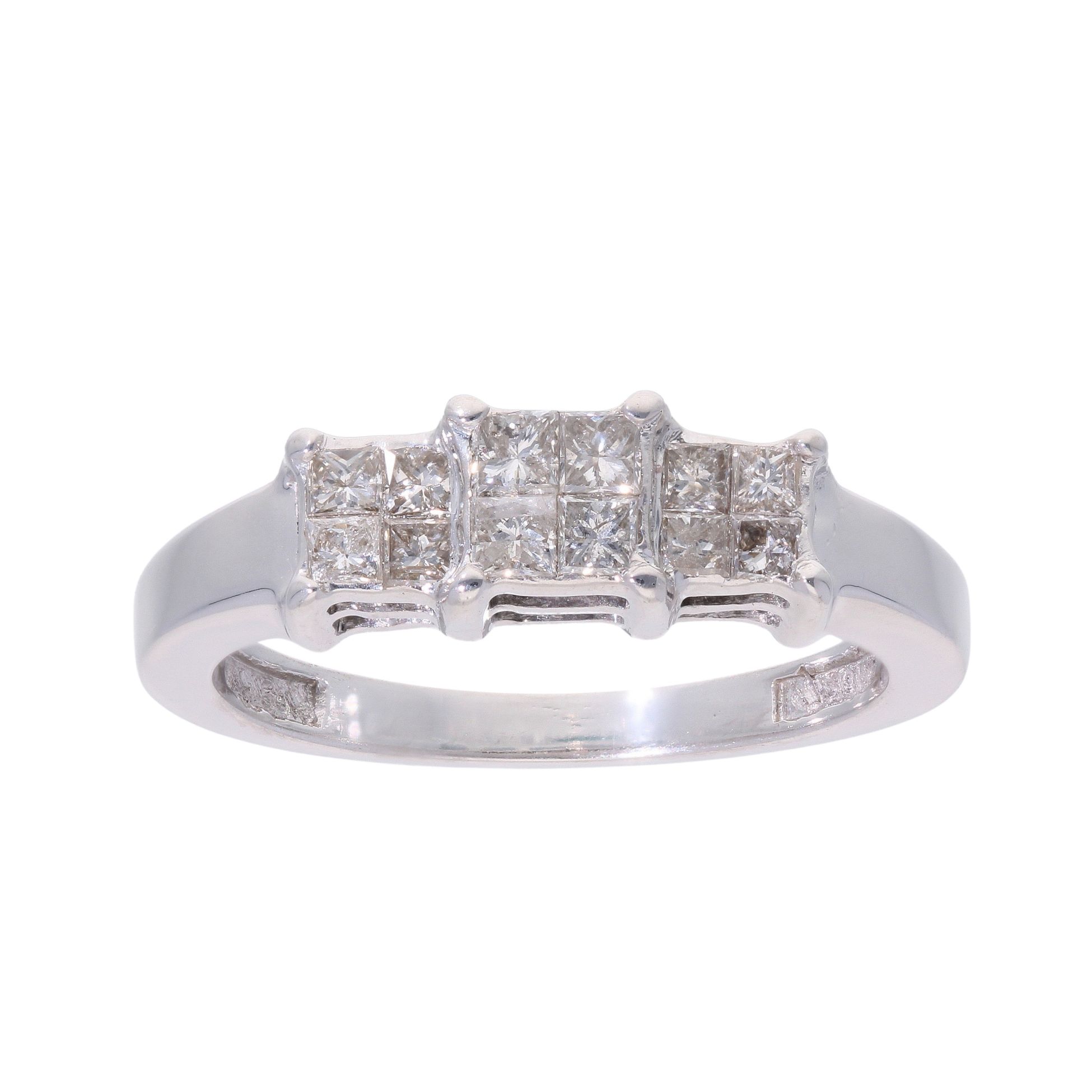 18ct White Gold 0.65ct Diamond Triple Cluster Ring