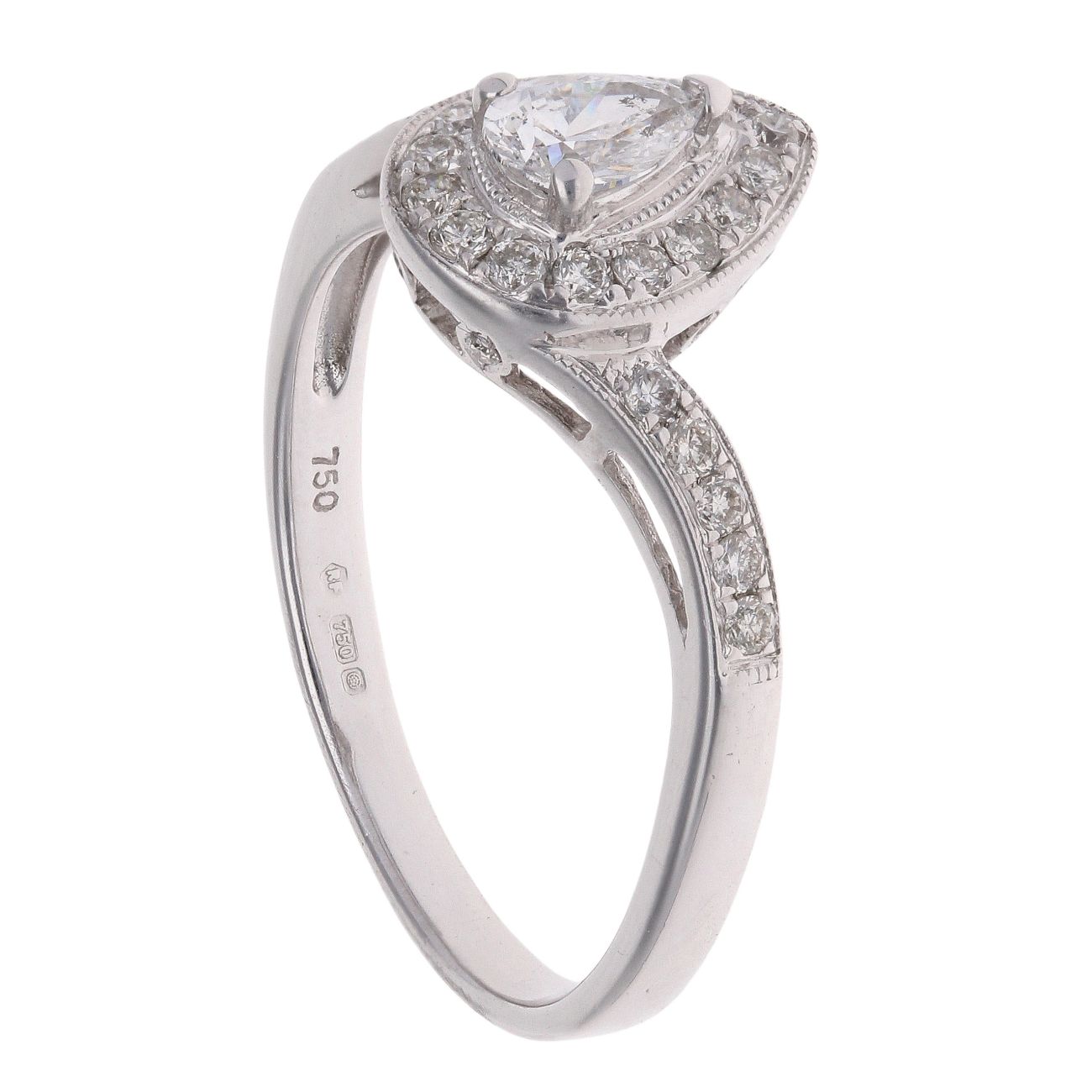 18ct White Gold 0.65ct Pear And Brilliant Cut Diamond Cluster Ring