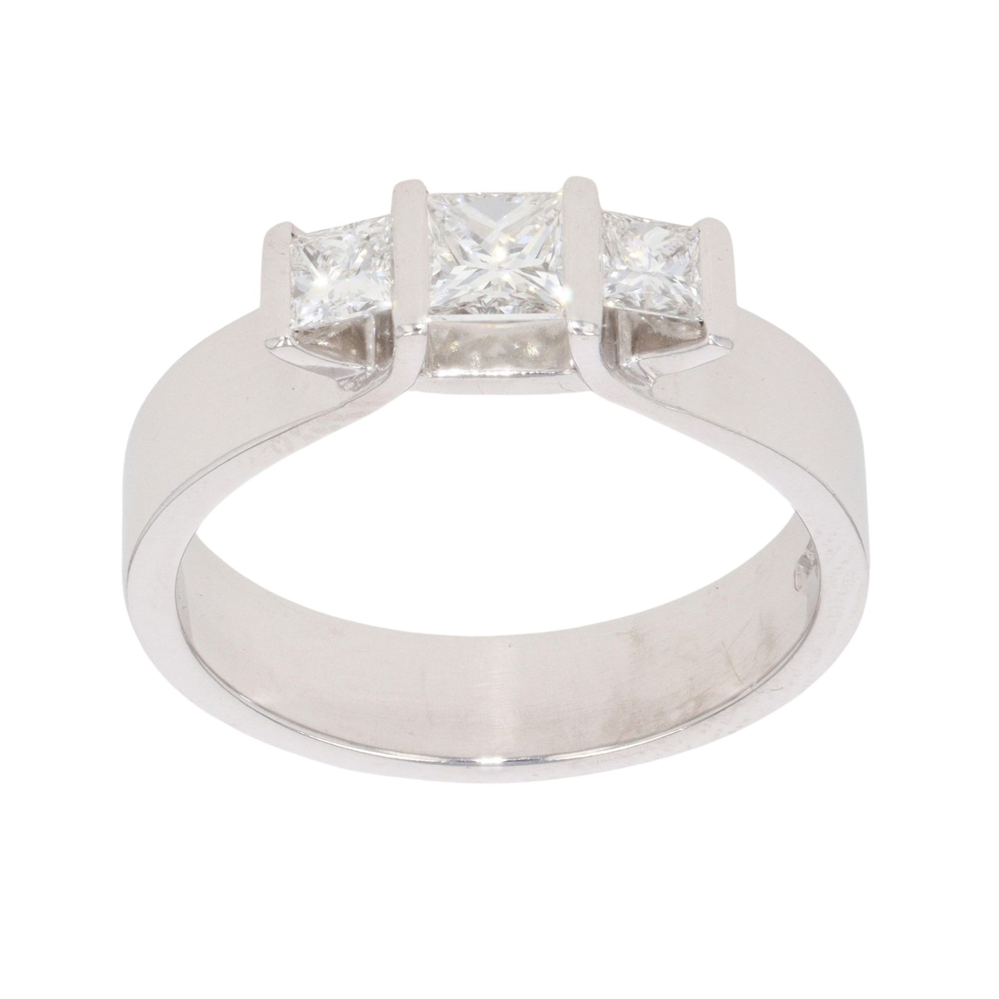 18ct White Gold 0.65ct Princess Cut Diamond Trilogy Ring